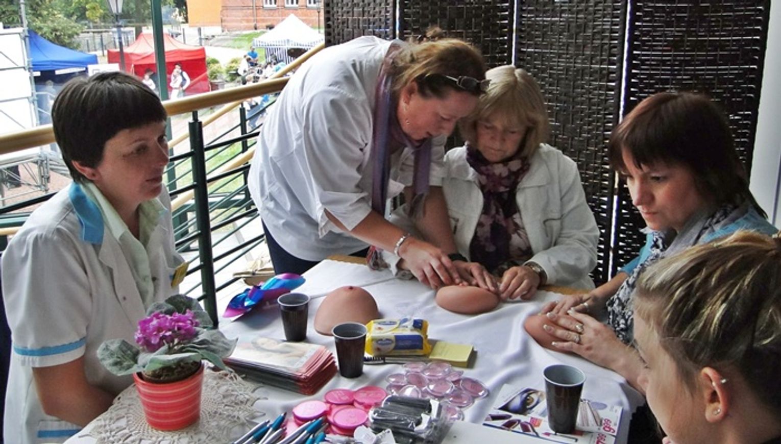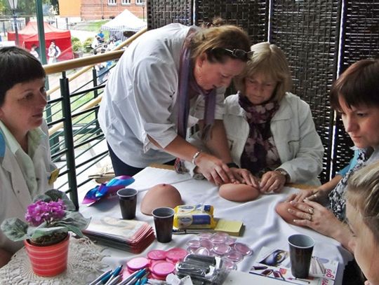 Stoisko zachęcające panie do badania piersi, informacji w zakresie raka piersi i technicznej nauki samokontroli na fantomach prowadziły doświadczone pielęgniarki z PTP Teresa Paszek i Dorota Marchlewicz, a 3 fantomy piersi zostały zakupione dzięki Towarzystwu Kulturalnemu Brama, co potwierdziła przedstawicielka Krystyna Łatasiewicz podkreślając, że panie coraz bardziej przełamują opory i korzystają z nauki badań piersi.