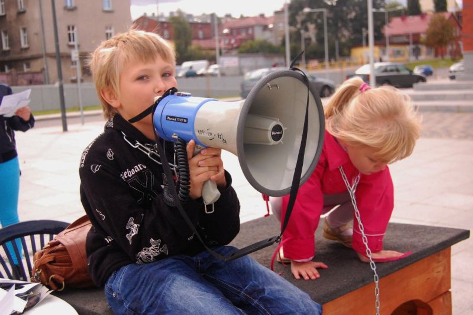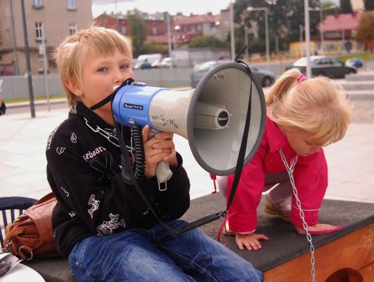 Wolontariusze używali też megafonów, z których dobiegało „ Naszą wolą naszą siłą zerwijmy psom łańcuchy”.