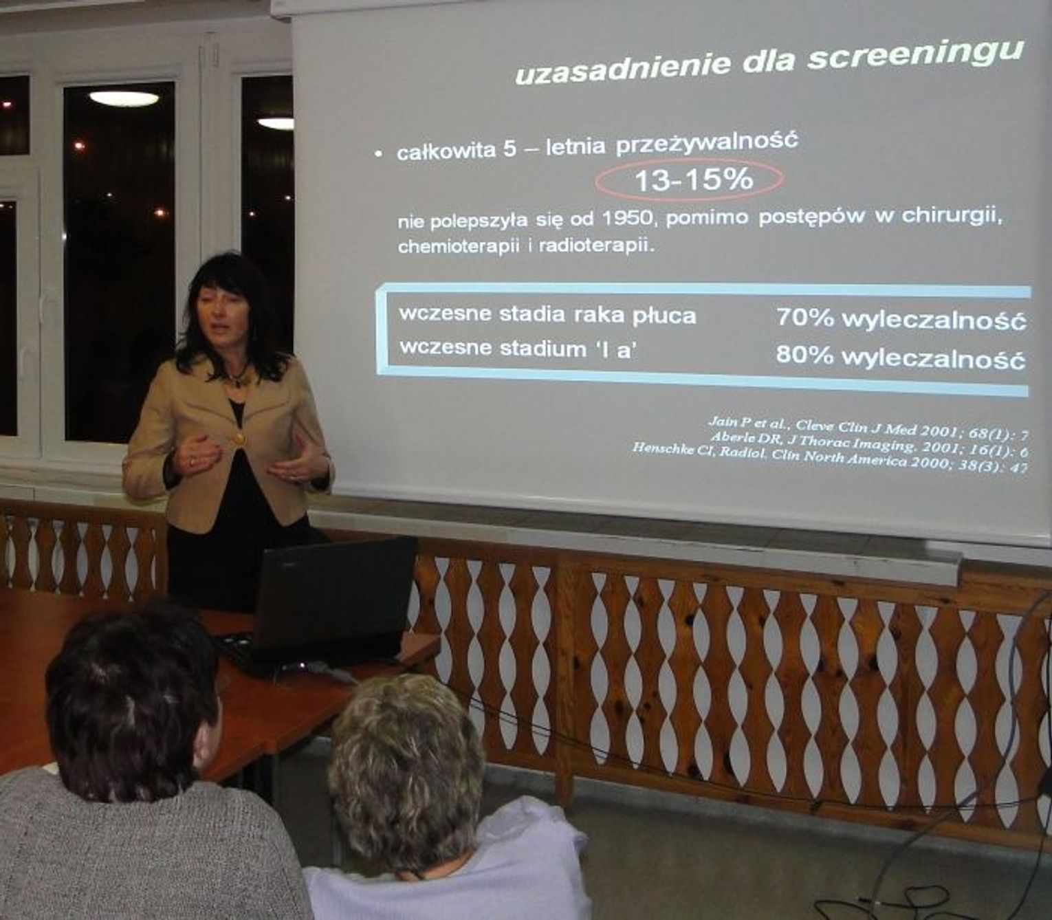 Informacje o diagnostyce w zakresie raka płuc J. Langa przedstawiła w wykładzie: „Niskodawkowe badanie TK klatki piersiowej we wczesnej diagnostyce nowotworów płuc":