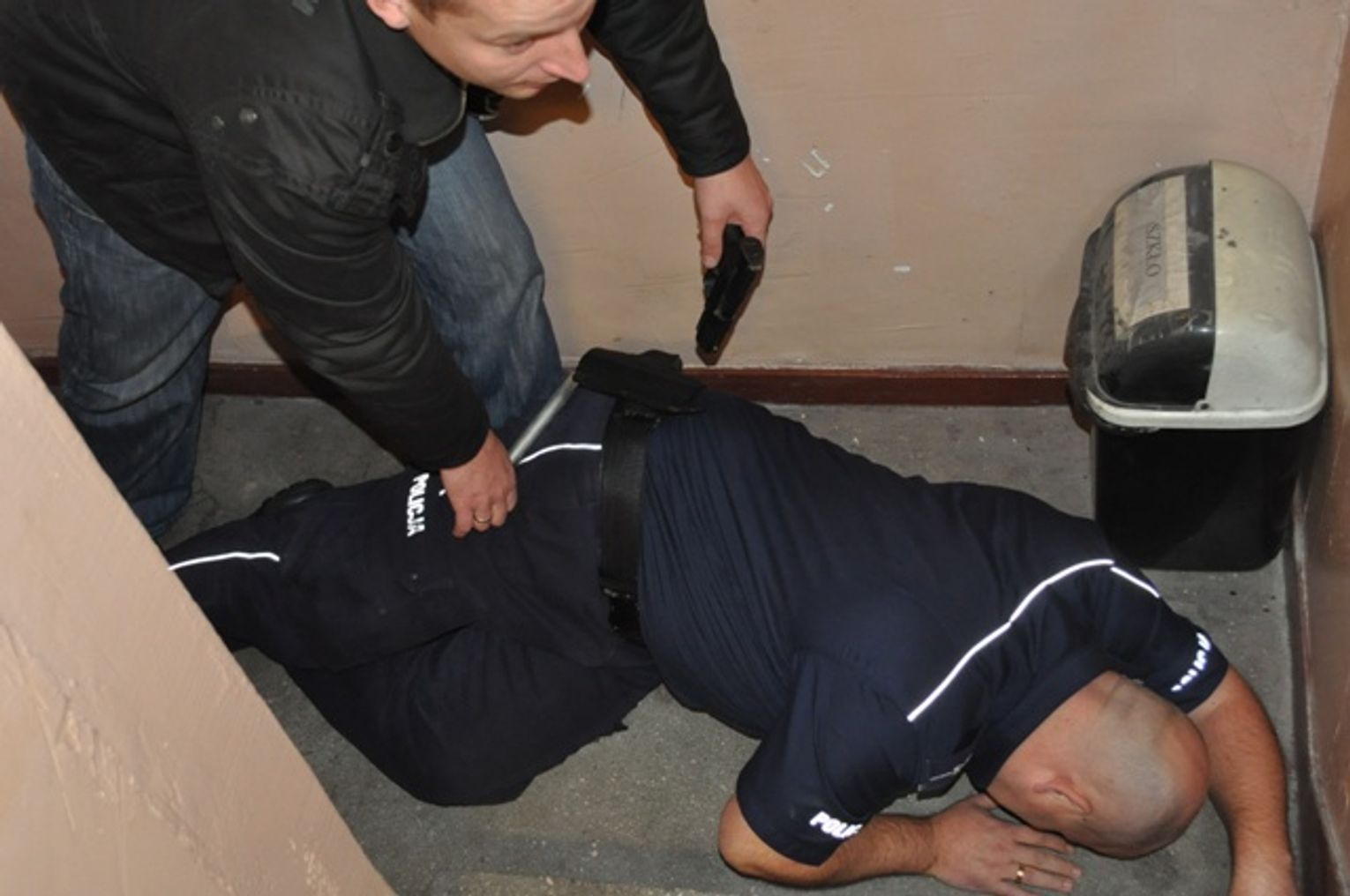 Petent, który przyszedł do tamtejszego posterunku, pod pozorem skorzystanie z toalety, poprosił policjanta o jej wskazanie, a ta znajduje się w części piwnicznej. Idąc za funkcjonariuszem, oprawca uderzył go metalowym narzędziem w tył głowy, w wyniku czego policjant upadł i chwilowo stracił świadomość. Wykorzystując ten fakt, sprawca ukradł policyjną broń i uciekł z posterunku w nieznanym kierunku. Po krótkiej chwili ranny funkcjonariusz odzyskał świadomość i poinformował o zdarzeniu dyżurnego starogardzkiej komendy Policji. Natychmiast zarządzono działania pościgowe i blokady dróg…