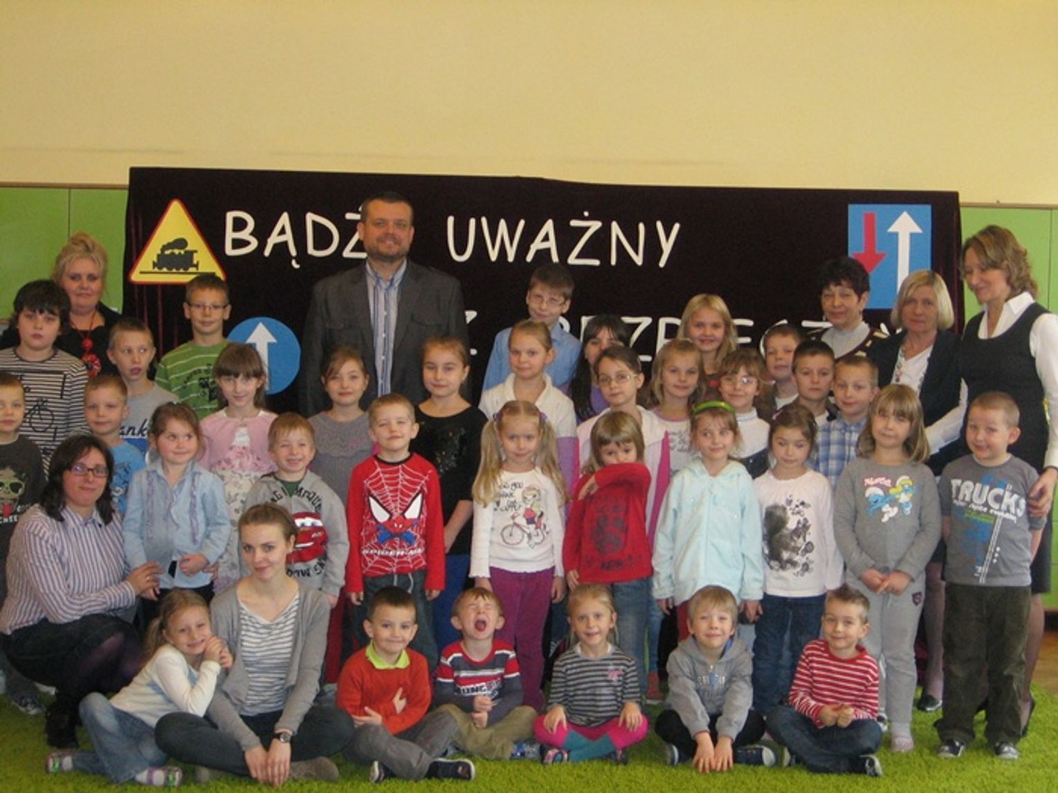 Jedną z przygotowanych atrakcji był udział maluchów w przedstawieniu dotyczącym zasad bezpiecznego zachowania się na drodze. Trzecioklasiści zaprezentowali swoim młodszym kolegom spektakl pt. „Bądź uważny, bądź bezpieczny na drodze!”. Następnie zaprosili przedszkolaków do wspólnej zabawy. Jak na sportową szkołę przystało, były to zabawy ruchowe. W sali gimnastyki korekcyjnej zarówno mali, jak i duzi w mieszanych drużynach przedszkolno – szkolnych wspólnie pokonywali dostosowane do ich możliwości przeszkody, wykazując się niezwykłą sprawnością, zwinnością i zręcznością. Każda z drużyn wykonała prawidłowo wszystkie zadania sprawnościowo – ruchowe, zdobywając tym samym nagrody. Na zakończenie wszystkie dzieci, choć nieco zmęczone po wyczerpujących konkurencjach sportowych, ale uśmiechnięte zasiadły do wspólnego poczęstunku.