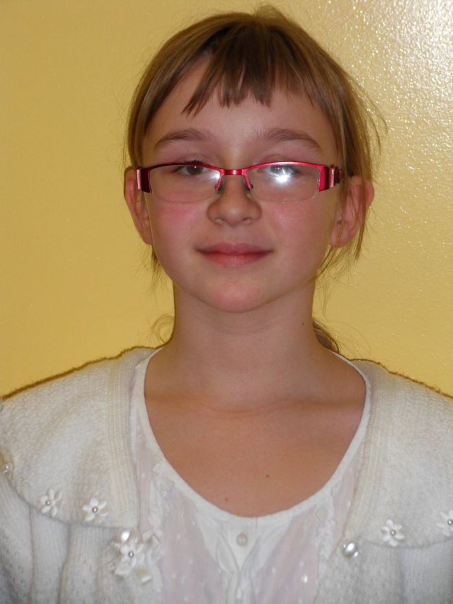 Amanda Orłowska, kl. IV, Nowa Cerkiew - ulubione przedmioty to: j. polski, informatyka, w-f i przyroda. Bierze udział w szkolnych przedstawieniach. Lubi czytać książki o koniach.