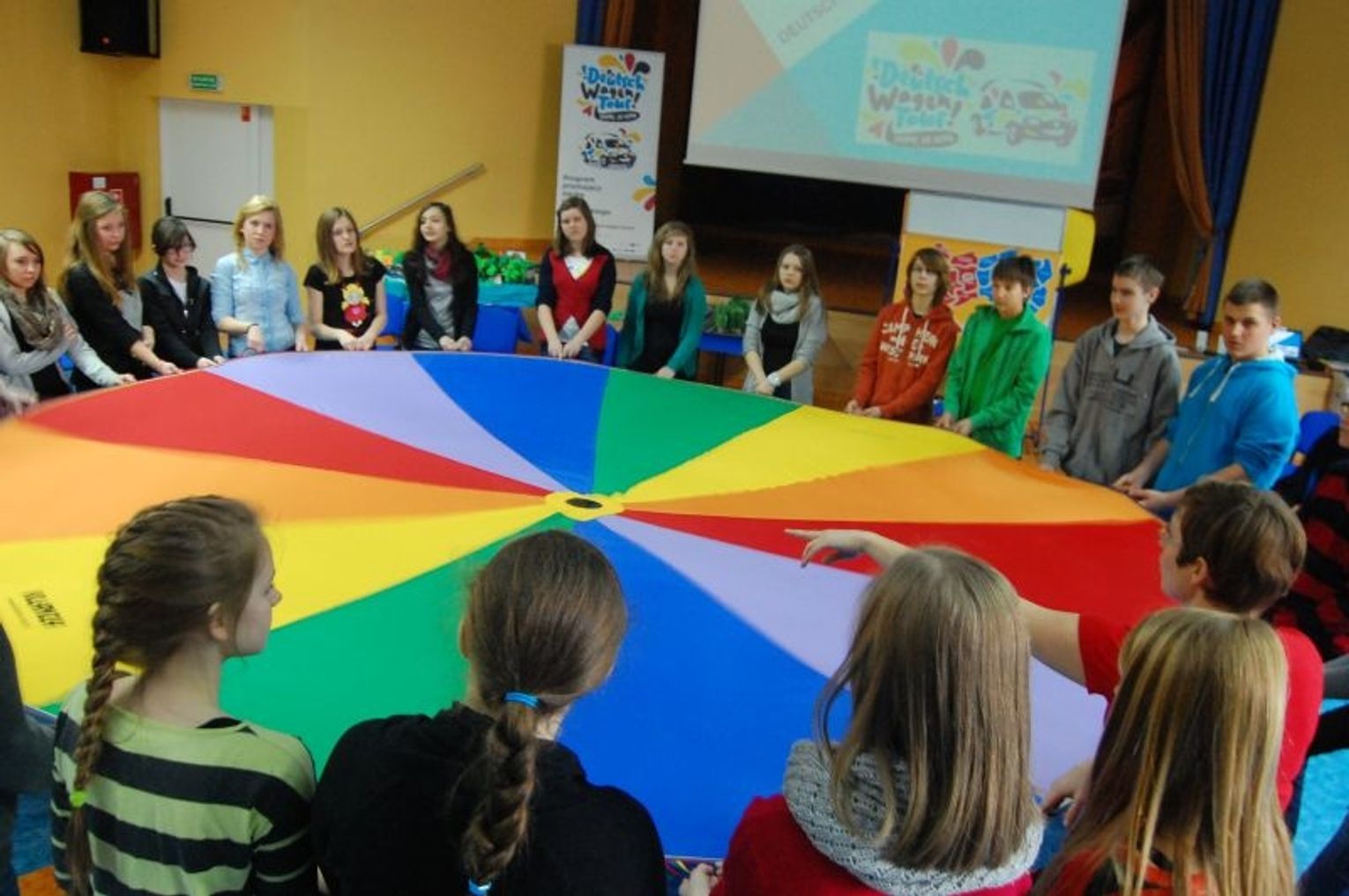 Uczniowie brali udział w konkursach z nagrodami. Gra edukacyjna z chustą, nauka słówek przy pomocy ćwiczeń sportowych albo quizy, to tylko niektóre z podsuwanych pomysłów przez Bogumiłę Manek germanistom z Gimnazjum nr 1.