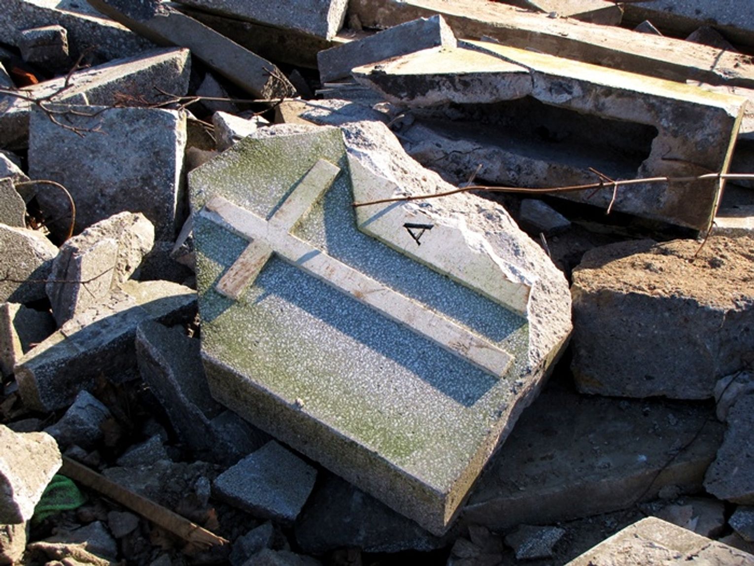 W ubiegłą sobotę udaliśmy się na miejsce wskazane przez naszego informatora. Rzeczywiście – tuż przy drodze prowadzącej z Tczewa do Gorzędzieja, między gruzem, kafelkami i workami z klejem do glazury, znaleźliśmy połamane krzyże, fragmenty nagrobków oraz wciąż czytelne tablice z nazwiskami zmarłych.
