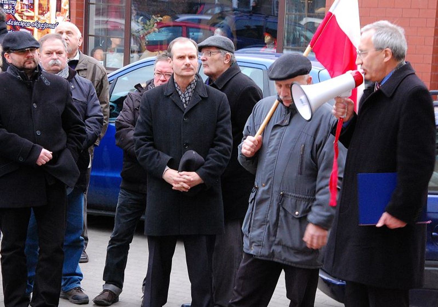 - Spotykamy się w miejscu, gdzie przed laty gościł prezydent Lech Kaczyński – przypomniał mec. Kazimierz Smoliński. - Mija już trzecia rocznica katastrofy, w której zginął prezydent i 95 wybitnych Polaków mu towarzyszących. Zginął m.in. ostatni prezydent Polski na uchodźstwie Ryszard Kaczorowski, wielu parlamentarzystów, członków rządu i instytucji państwowych, generałów wszystkich rodzajów sił zbrojnych oraz działaczy katyńskich. Zginęła także legenda „Solidarności” – Anna Walentynowicz. Nie wolno nam zapomnieć o tej katastrofie. Nie możemy dopuścić by powstało „kłamstwo smoleńskie”, które byłoby podobne do kłamstwa katyńskiego, trwającego na świecie do 1991 r., a w Polsce do 1990 r. Gdy trzy lata temu słyszeliśmy pierwsze informacje o tej tragedii, z niedowierzaniem mówiliśmy w myślach – „przecież samoloty prezydenckie nie spadają!”. Tymczasem minęły trzy lata, a według najnowszych badań 1/3 Polaków wierzy, że był to zamach. Ponad 50 proc. społeczeństwa nadal nie zna przyczyn katastrofy. Tylko 12 proc. Polaków wierzy w oficjalną, rządową wersje zdarzeń. Mamy obowiązek domagać się godnego upamiętnienia ofiar tej katastrofy - zarówno przez władze centralne, jak i lokalne. Mamy też obowiązek wyciągnięcia wniosków z tego zdarzenia.