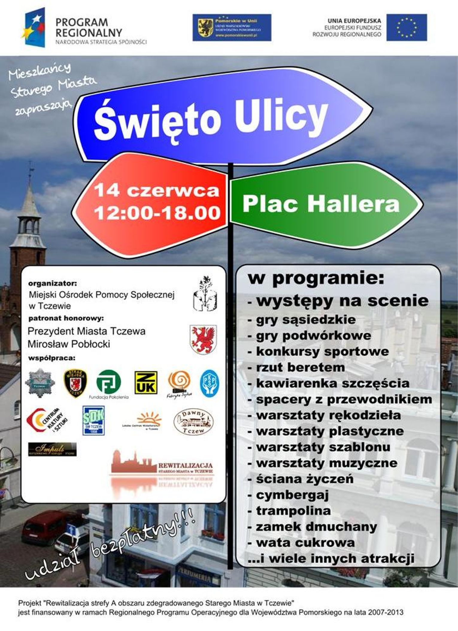 - W czerwcu mija półrocze obchodów Europejskiego Roku Obywateli. W Tczewie tę symboliczną rocznicę aktywności obywatelskiej mieszkańcy będą mieli okazję świętować w szczególny sposób – organizując 14 czerwca Święto Ulicy na placu Hallera – tłumaczy rzeczniczka urzędu miejskiego, Małgorzata Mykowska.