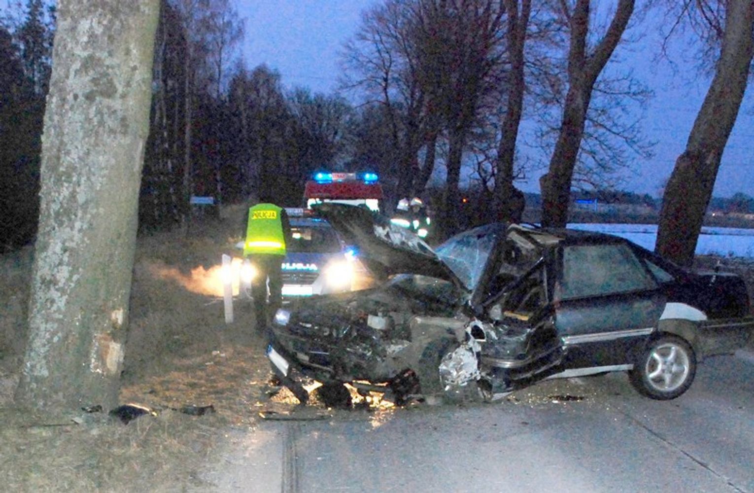 Policjanci ze Zblewa wyjaśniają okoliczności wypadku drogowego jaki wydarzył się wczoraj około godz. 16:00 na drodze wojewódzkiej nr 214. Jak wynika ze wstępnych ustaleń kierowca osobowego opla jadąc od strony Borzechowa w kierunku Zblewa zjechał na lewe pobocze i czołowo z impetem uderzył w drzewo.