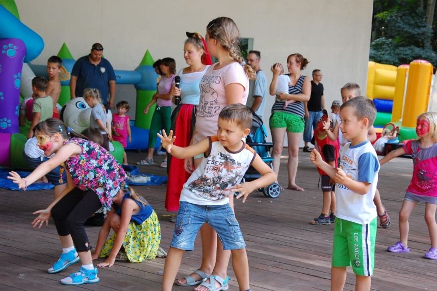 Kolejki dzieci stały przed zamkami dmuchanymi i basenami z kolorowymi piłeczkami.