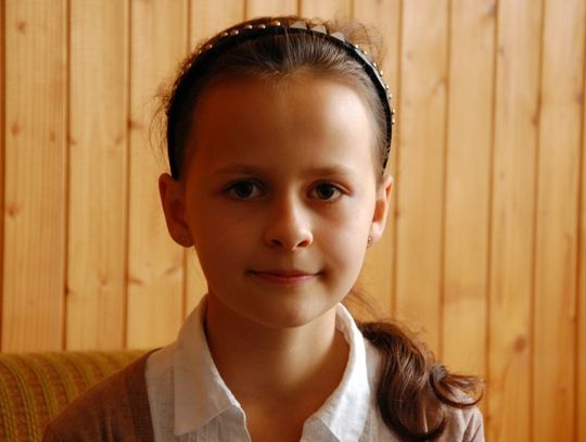 Średnia 5,4. Interesuje się muzyką. Najbardziej lubi tę popową. Gra nawet na flecie i śpiewa, jak mówi - dla siebie. Z książek uwielbia przygodową serię „Martynka”. W ostatnie wakacje była na koncercie gospel w Gniewie, który bardzo się jej spodobał. W ub. roku wzięła udział w konkursie plastycznym. W swojej pracy przedstawiła dokarmianie jeleni w lesie.