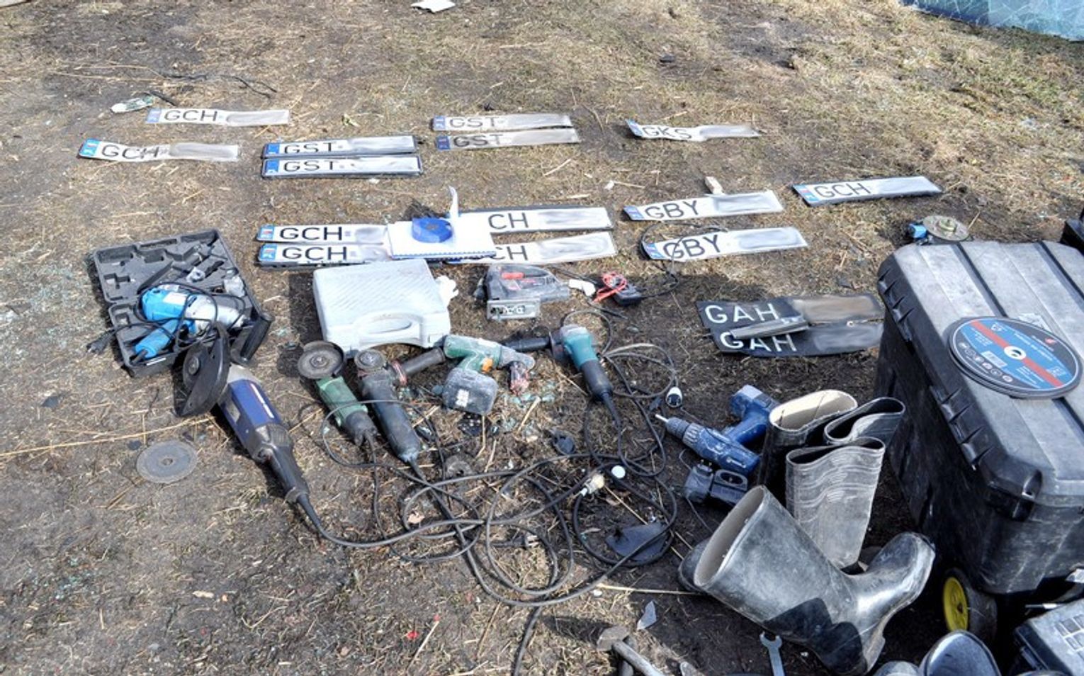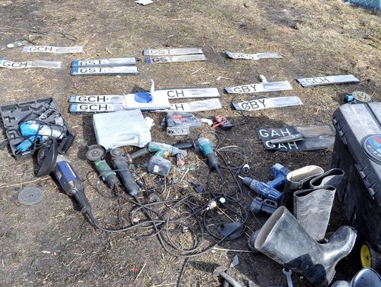 Jak informuje mł. asp. Marcin Kunka, oficer prasowy KPP w Starogardzie Gd., podczas przeszukania garaży i pomieszczeń gospodarczych policjanci odnaleźli także tablice rejestracyjne pochodzące ze skradzionych na terenie woj. pomorskiego samochodów. Interweniujący w tej sprawie funkcjonariusze zabezpieczyli również znaczną ilość elektronarzędzi i części samochodowych. Gdy policjanci wkroczyli na posesję przestępcy kończyli rozkręcanie jednego z aut.