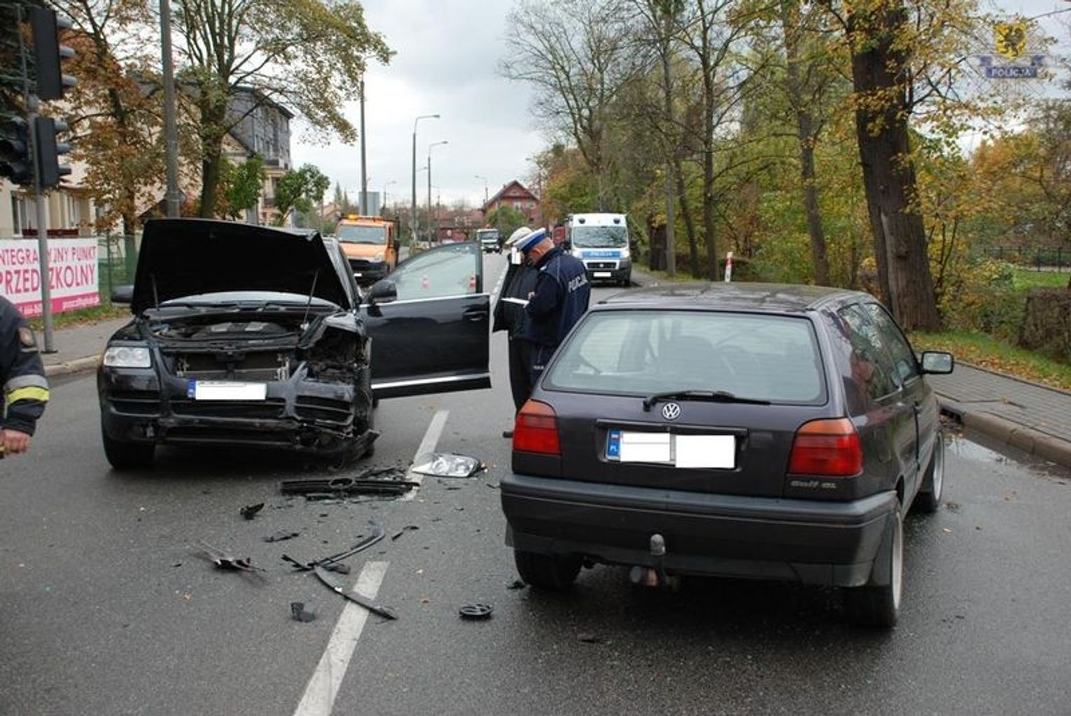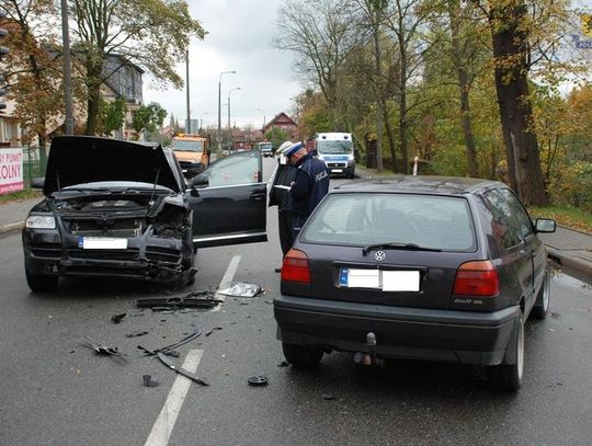 Kierująca volkswagenem golfem zderzyła się z jadącym volkswagenem touaregiem. Kierowcy obu samochodów byli trzeźwi. Do szpitala trafiła 31-latka kierująca golfem oraz podróżujące z nią 3-letnie dziecko. Ze względu na uszkodzenia powypadkowe policjanci zatrzymali dowód rejestracyjny volkswagena golfa.