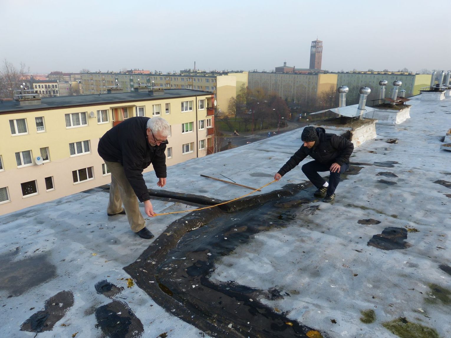 Mieszkańcom te zapewnienia jednak nie wystarczają i łapią się za głowę na widok wydrążonych na dachu rowów. Zgłosili się do Sławomira Araszewicza z Inżynierskiego Biura Doradczego Estimbud z prośbą o ocenę stanu dachu. Araszewicz, autor wielu opinii z zakresu poprawności przebiegu procesów inwestycyjnych, przygotował opinię techniczną, w której stwierdził, że „po uwzględnieniu wszystkich stwierdzonych wad jedynym technicznie poprawnym rozwiązaniem jest ponowne wykonanie termomodernizacji dachu”. Co na to firma wykonawcza?