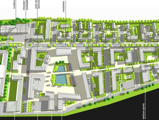 Czym charakteryzuje się zwycięska koncepcja? Proponuje ona stworzenie trzech głównych stref funkcjonalnych. W strefie usługowej mógłby się znaleźć transporter innowacji wraz z ośrodkiem doskonalenia zawodowego, a także multimedialne, interaktywne centrum edukacyjne. Projekt zakłada wyburzenie istniejącego budynku koszar wojskowych, ale istnieje też wariant, który pozwoliłby na jego zachowanie. Z kolei w południowej części twórcy koncepcji zaplanowali park technologiczny o funkcji usługowo-przemysłowej. Mogłaby w nim powstać kolejna Specjalna Strefa Ekonomiczna. Trzeci obszar to usługi i mieszkania, znajdujące się we wschodniej części, graniczącej z osiedlem Kolejarz.