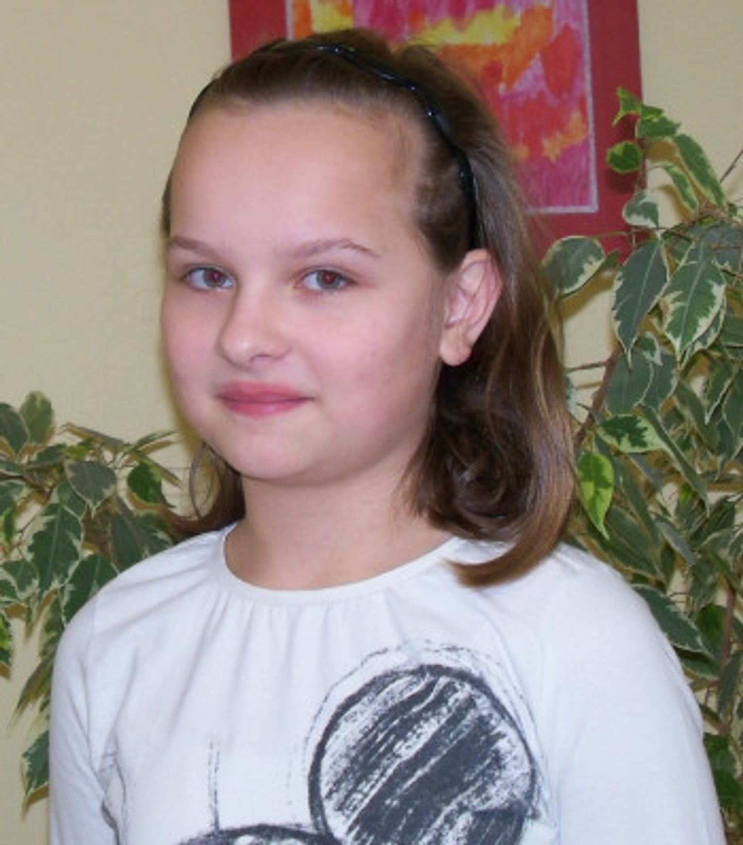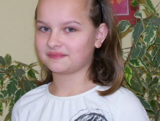 Lubię plastykę, WF i j. angielski, który może się przydać kiedyś w pracy. Od kl. pierwszej biorę udział w konkursach plastycznych, recytatorskich, w tym im. Romana Landowskiego, a także startowałam w „Kangurku matematycznym - Żaczek”. Interesuję się muzyką, gram na organach i na cymbałkach. Występowałam np. w Domu Pomocy Społecznej. Chciałabym być fryzjerką, bo bardzo lubię czesać wszystkie lalki. Mam psa Borę, który gdy stanie na łapach jest większy ode mnie.