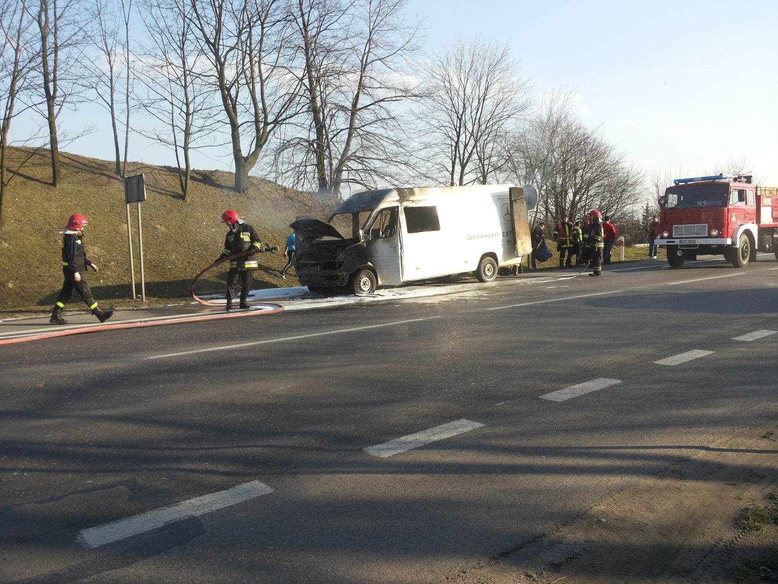 Mercedes Sprinter zapalił się na krajowej "jedynce"