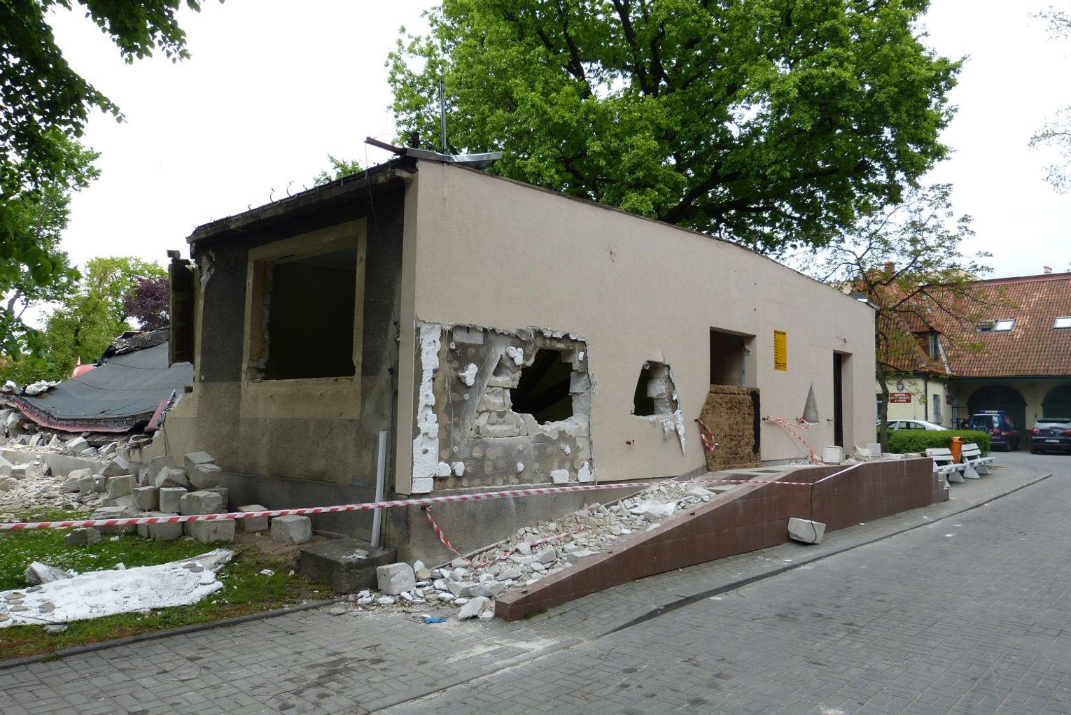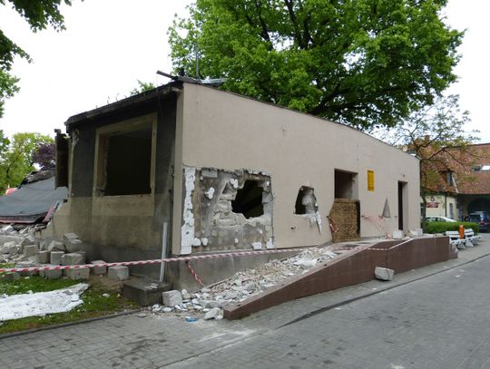 Trwa wyburzanie pawilonu za Urzędem Miejskim, w którym do niedawna pracowali urzędnicy obsługujący klientów.