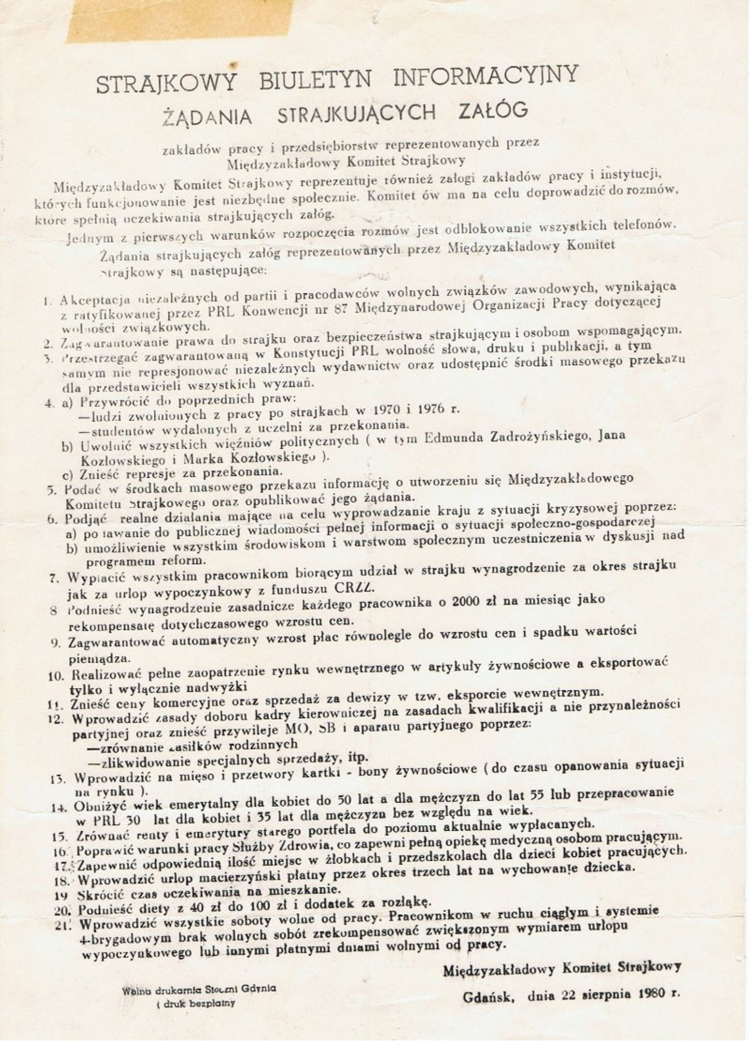 Czy wszystkie z 21 Postulatów strajkujących w Sierpniu 80 zostały zrealizowane? Jak mają się one do dzisiejszych realiów?