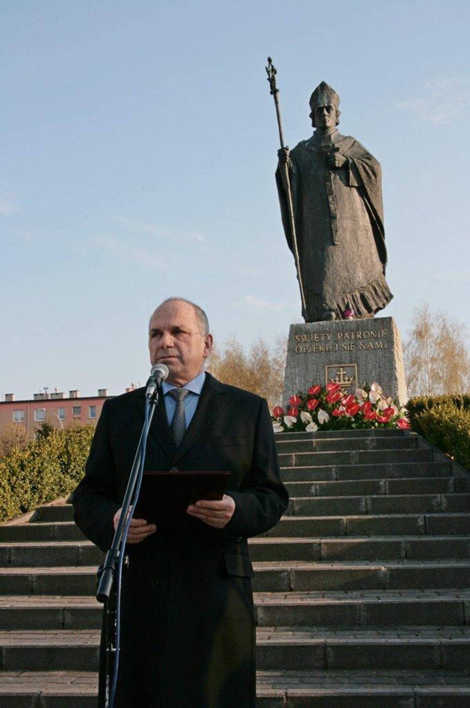 Ksiądz bp dokonał aktu ponownego zawierzenia społeczności lokalnej patronowi miasta św. Wojciechowi. Przypomniał zebranym, że właśnie ten święty patronuje jednoczącej się Europie. Potem głos zabrał prezydent Edmund Stachowicz.
