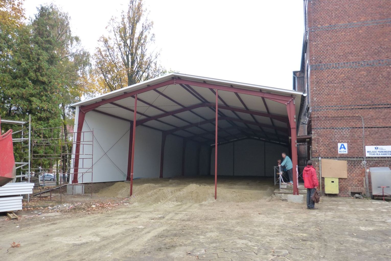 Trwają wstępne prace związane z budową szpitalnego łącznika. Dzięki wydaniu pozwolenia na budowę wkrótce firma Resteks rozpocznie prace budowlane. Zanim zostanie wmurowany kamień węgielny należy wykonać prace przygotowawcze, m.in. budowę hali pełniącej funkcje zaplecza budowlanego oraz głęboki wykop w miejscu przyszłego łącznika.
