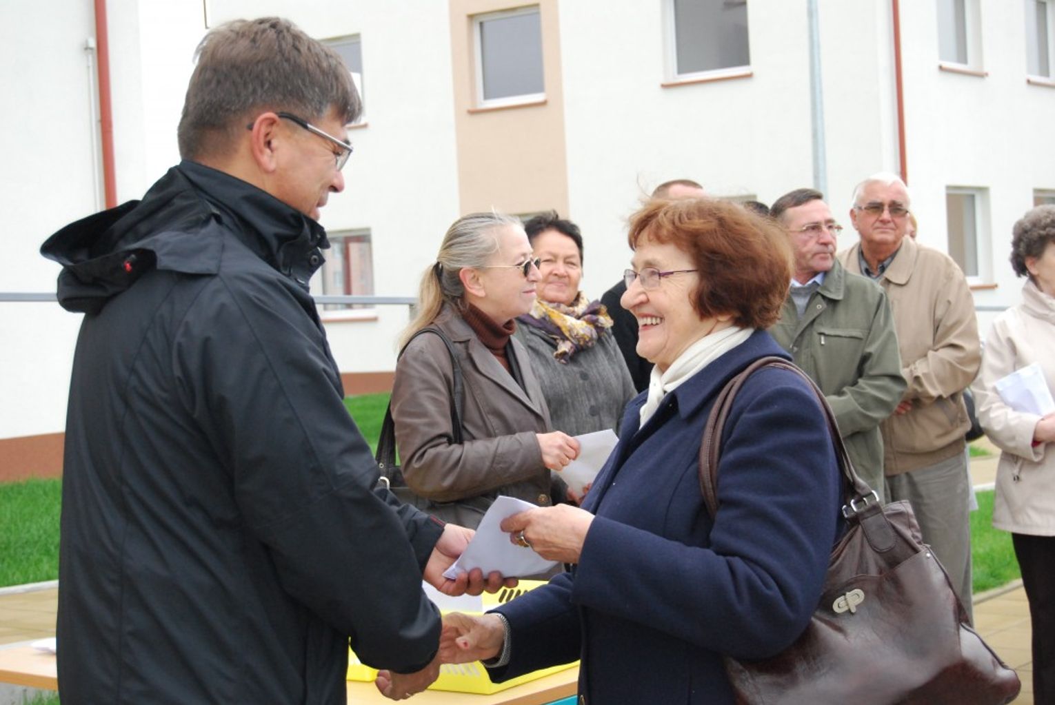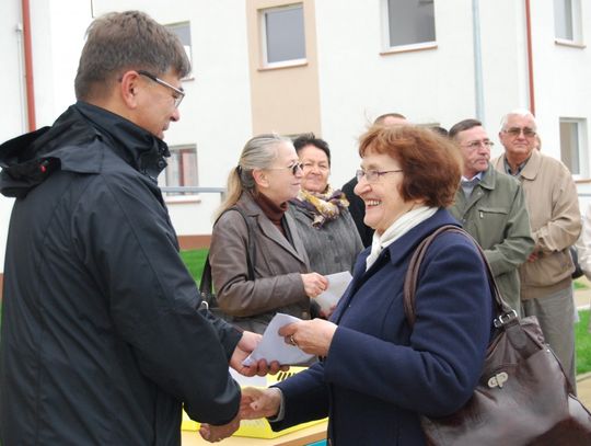 Po poświęceniu terenu burmistrz oraz wiceburmistrz wręczyli klucze do nowych mieszkań. Wszyscy lokatorzy przeszli do swoich nowych M. W sumie do końca roku do nowych lokali przeprowadzi się 29 rodzin. Pozostałe siedem mieszkań zostanie sprzedanych na zasadach komercyjnych.