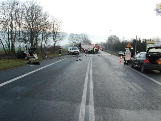 We wtorek (09 grudnia br.) o godz. 14.15 dyżurny pruszczańskiej policji odebrał zgłoszenie od dyspozytora Straży Pożarnej, że na drodze krajowej nr 91 w Kolniku doszło do wypadku drogowego. Oficer dyżurny natychmiast wysłał na miejsce policjantów ruchu drogowego oraz powiadomił pozostałe służby ratownicze. Na miejscu wypadku technik kryminalistyki zabezpieczył ślady, zrobił zdjęcia oraz sporządził szkic sytuacyjny, zbadano również stan trzeźwości kierowców. Ze wstępnych ustaleń wynika, że 18-letni mieszkaniec Tczewa kierujący Fordem Mondeo jadąc w kierunku Tczewa przekroczył oś jezdni, zjechał na przeciwny pas ruchu i zderzył się czołowo z Mercedesem jadącym w przeciwnym kierunku. 34-letnia mieszkanka gminy Suchy Dąb kierująca Mercedesem siłą odrzutu została wyrzucona na prawe pobocze. Ford Mondeo obrócił się wokół własnej osi i zderzył się z Fiatem Scudo jadącym w kierunku Pruszcza Gdańskiego. Kierująca mercedesem została przetransportowana do szpitala wojewódzkiego w Gdańsku przez śmigłowiec lotniczego pogotowia ratunkowego. Do szpitala trafili także kierowca i 18-letni pasażer Forda Mondeo. Policjanci zatrzymali dowód rejestracyjny i prawo jazdy kierowcy Forda oraz dowód rejestracyjny od Mercedesa. Droga krajowa nr 91 była zablokowana przez dwie i pół godziny. Policja apeluje o ostrożność! Dostosowujmy prędkość jazdy do warunków panujących na drodze oraz zachowujmy bezpieczną odległość od poprzedzających nas pojazdów.
