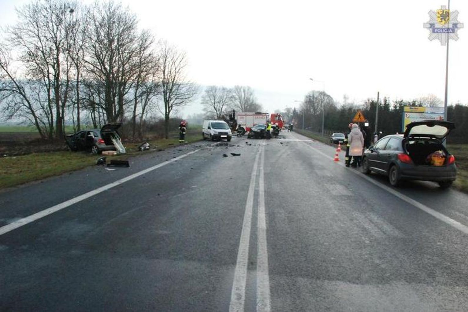 Policjanci z komendy powiatowej w Pruszczu Gdańskim ustalają przyczyny wypadku drogowego do którego doszło na drodze krajowej nr 91 w Kolniku gmina Pszczółki. Kierowca Forda Mondeo jadący w kierunku Tczewa przekroczył oś jezdni, zjechał na przeciwny pas ruchu i zderzył się czołowo z Mercedesem. Następnie Ford obrócił się wokół własnej osi i zderzył się z Fiatem Scudo jadącym w kierunku Pruszcza Gdańskiego. Do szpitala trafiły trzy osoby- kierująca Mercedesem oraz kierowca i pasażer Forda Mondeo. Wszyscy kierujący byli trzeźwi. Droga krajowa nr 91 była zablokowana przez dwie i pół godziny.