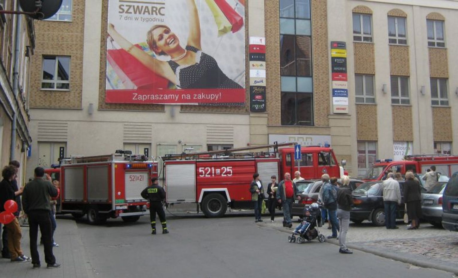 Ok. godz. 10.20 w budynku Galerii Szwarc przy ul. Kościuszki włączył się alarm pożarowy. Pracownicy sklepów oraz klienci z powodu gęstego i duszącego dymu wybiegli na zewnątrz. Po chwili na miejscu pojawiły się trzy wozy Straży Pożarnej oraz jeden wóz OSP. Prawdopodobnie powodem było zwarcie instalacji elektrycznej.