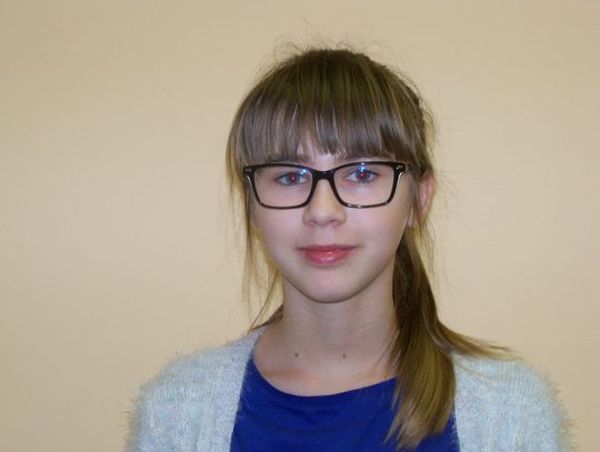 Na matematyce podobają mi się różne działania. Lubię przyrodę, WF, grać w siatkówkę. Interesuje mnie anatomia. Byłam pierwsza w konkursie z matematyki i z przyrody w szkole. Od 5 lat tańczę w zespole „Modraki”. Fajne są występy i spotkania z koleżankami. Śpiewam w scholi parafialnej. Chcę być prawnikiem, może prokuratorem.