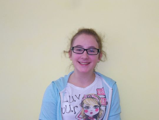 Moje ulubione przedmioty to WF, dlatego że fajnie się ćwiczy różne rzeczy, i muzyka, bo uczymy się nowych piosenek. Najbardziej podoba mi się gra w siatkówkę. Należę do kółka teatralnego, sportowego i matematycznego. Od roku chodzę do szkoły muzycznej. Gram na trąbce. W wolnym czasie chętnie spędzam czas na wolnym powietrzu. Chciałabym zawodowo uprawiać siatkówkę albo być piosenkarką. Bardzo lubię Ewę Farnę czy Sylwię Grzeszczak. Startowałam w konkursie wokalnym.