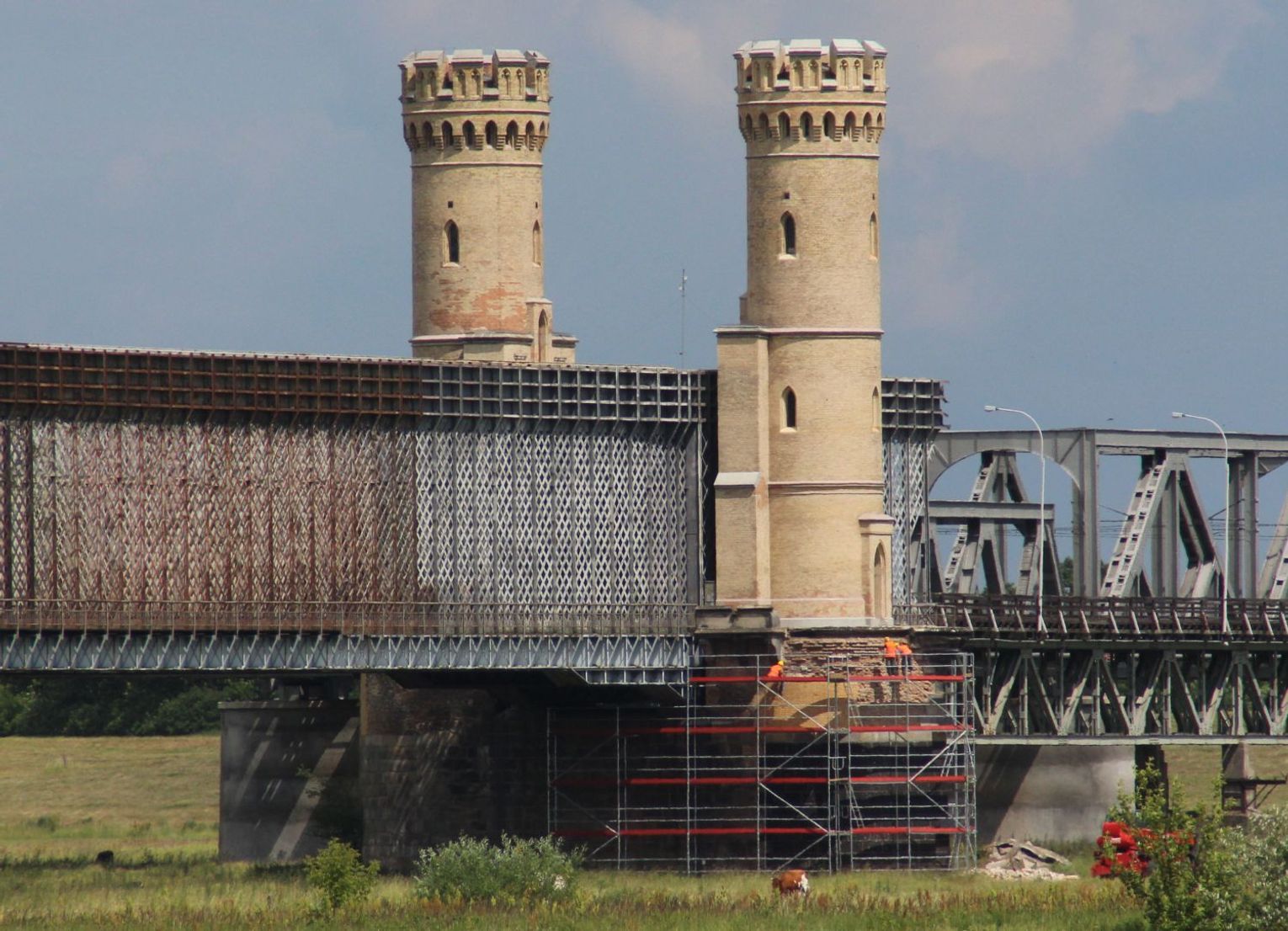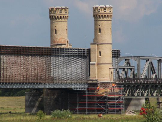 Zabytkowe wieżyczki i jeden filar na Moście Tczewskim odzyskały swój blask, wkrótce rozpocznie się remont kratownicowych przęseł Lentzego, a tymczasem trwają prace rewitalizacyjne ostatniego, zabytkowego filara.