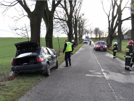 Wczoraj około godziny 9.00 dyżurny policji w Tczewie został powiadomiony o wypadku drogowym, do którego doszło w miejscowości Dalwin. Policjanci, którzy pojechali na miejsce wstępnie ustalili, że kierująca audi jadąc w kierunku miejscowości Rukosin zjechała na lewe pobocze drogi i czołowo uderzyła w drzewo. W wyniku tego zdarzenia ranna została kierująca oraz jej półtoraroczne dziecko, które przetransportowano do szpitala w Gdańsku. Badanie krwi wykaże czy kierująca była trzeźwa. Śledczy zatrzymali dowód rejestracyjny od audi.