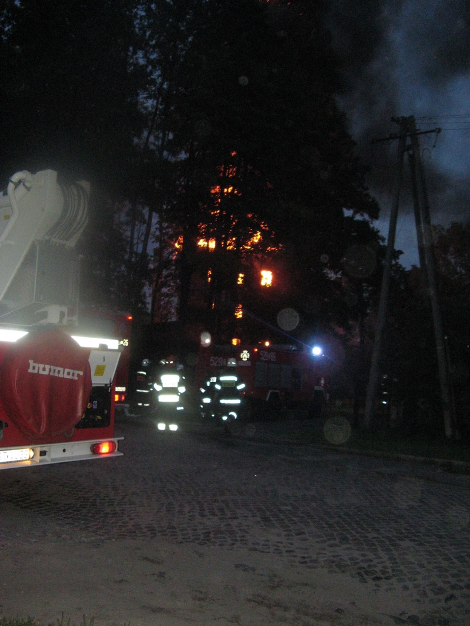 Konstrukcja budynku wykonana była z cegieł, natomiast stropy, schody i ściany wewnątrz były drewniane. Ratownicy zabezpieczyli teren działań i podjęli pierwsze czynności gaśnicze, w tym działania z podnośnika SH-18.