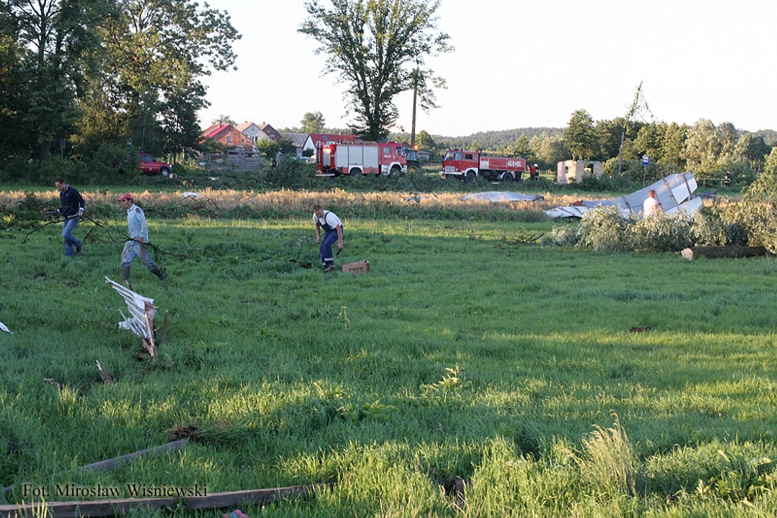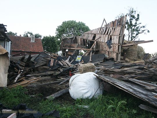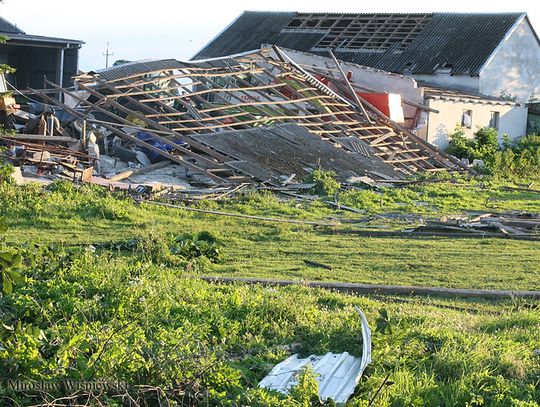 -Byłem w oborze i widziałem jak wiatr kładzie plackiem rosnąca obok kukurydzę - mówi poszdokowany przez tornado mieszkaniec Mątowskich Pastwisk. - Chcieliśmy wiec z ojcem szybko zamknąć drzwi. To było jak w filmie. Nie minęła chwila i trąba zerwała wszystko, a eternit i drewno porwane zostało kilkometr, albo i dalej.