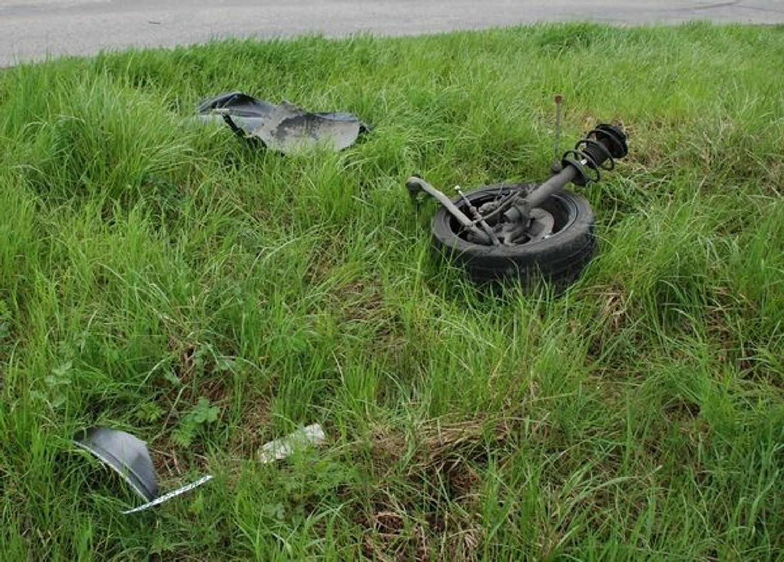 STAROGARD GD. / JABŁOWO. Do groźnie wyglądającego wypadku drogowego doszło w miejscowości Jabłowo. W wyniku nie ustąpienia pierwszeństwa zderzyły się dwa pojazdy. Siła uderzenia była tak wielka, że uczestnicząca w zdarzeniu skoda obróciła się o 180 stopni, a z bmw wyrwało się koło wraz zawieszeniem.