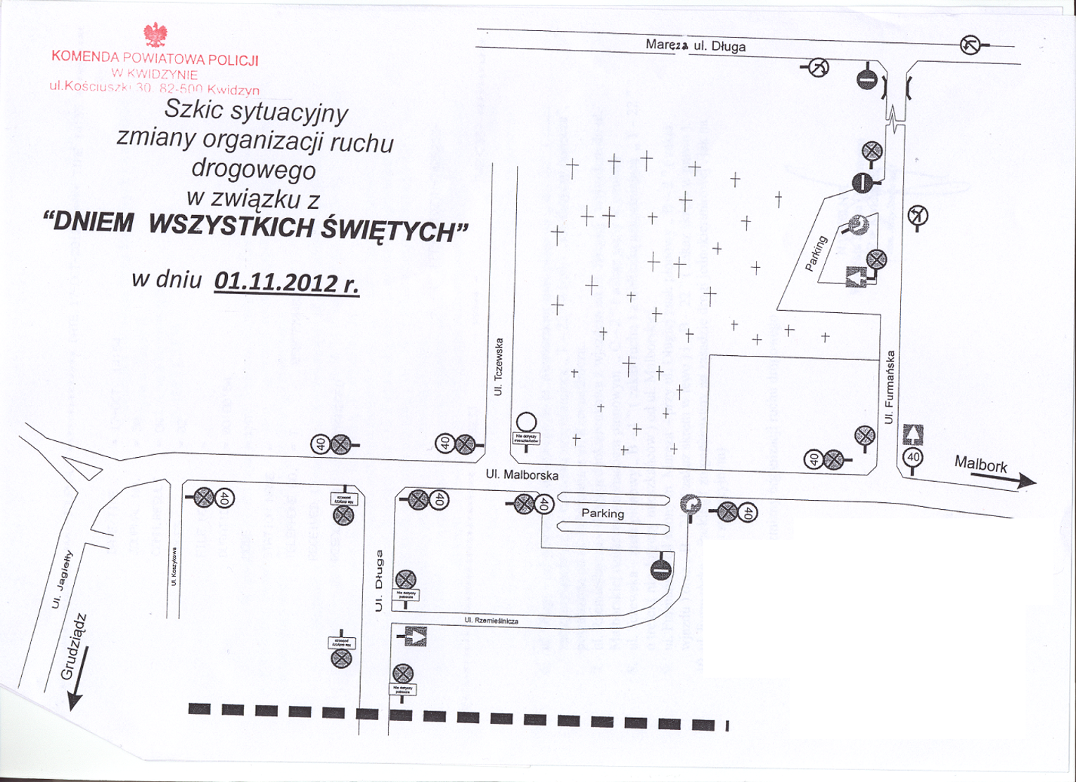 3. ul. Malborska – od skrzyżowania z ul. Furmańską do ul. Koszykowej ograniczenie prędkości do 40 km/h oraz znak pionowy „B– 36 ” ( zakaz zatrzymywania się ) , powtarzane od skrzyżowań z ul. Tczewską , Długą.