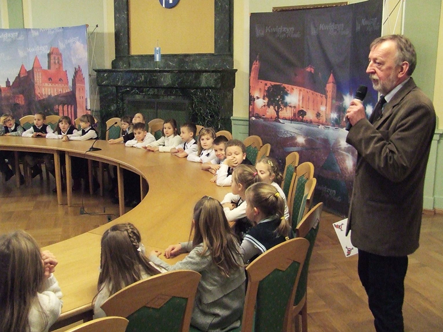 Do tegorocznej edycji konkursu na Kwidzyńską Kartkę Świąteczną przystąpili uczniowie klas pierwszy z aż pięciu szkół podstawowych. Do uczestniczących od lat uczniów SP 2, SP 4, SP 5 i SP 6, w tym roku dołączyli również pierwszaki z nowoutworzonej Społecznej Szkoły Podstawowej. Burmistrz gorąco dziękował rodzicom i nauczycielom za zaangażowanie i pomoc w powstanie prac do tego konkursu.