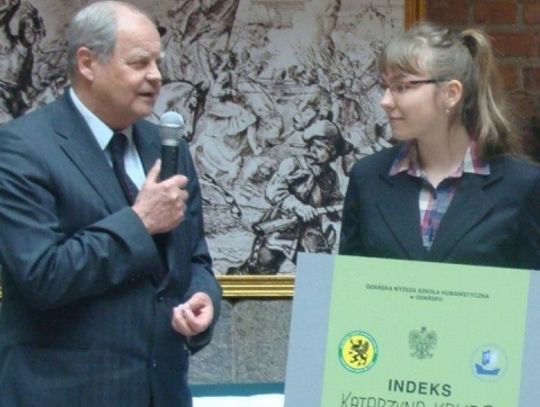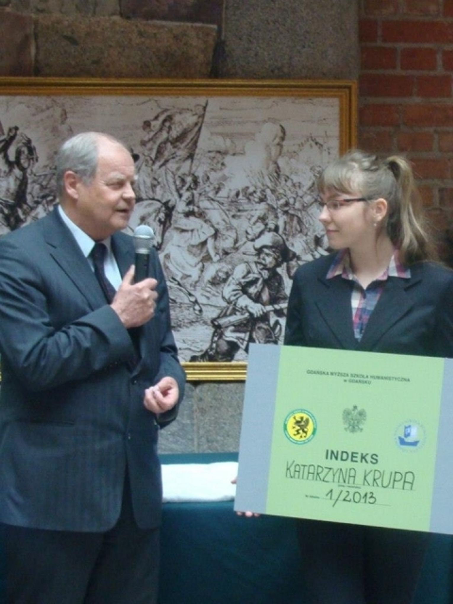 Z rąk Rektora GWSH Prof. dra hab. Zbigniewa Machalińskiego odebrała nagrodę główną, jaką jest indeks na bezpłatne studia na dowolnie wybranym kierunku w Gdańskiej Wyższej Szkole Humanistycznej.