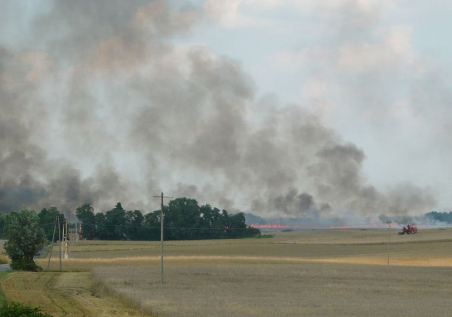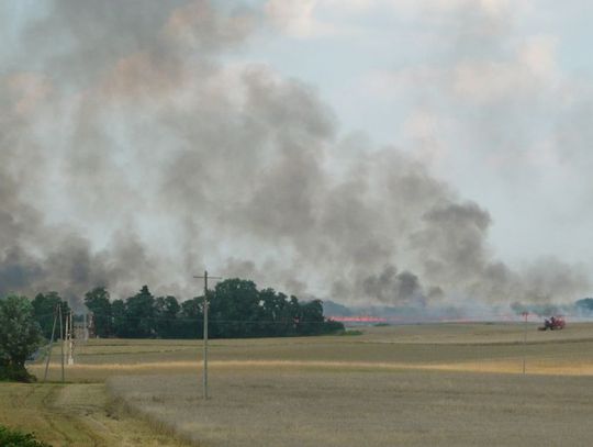 KOCIEWIE. Pożar na na polach w Dąbrówce (wieś koło Starogardu Gd.). Pali się zboże.