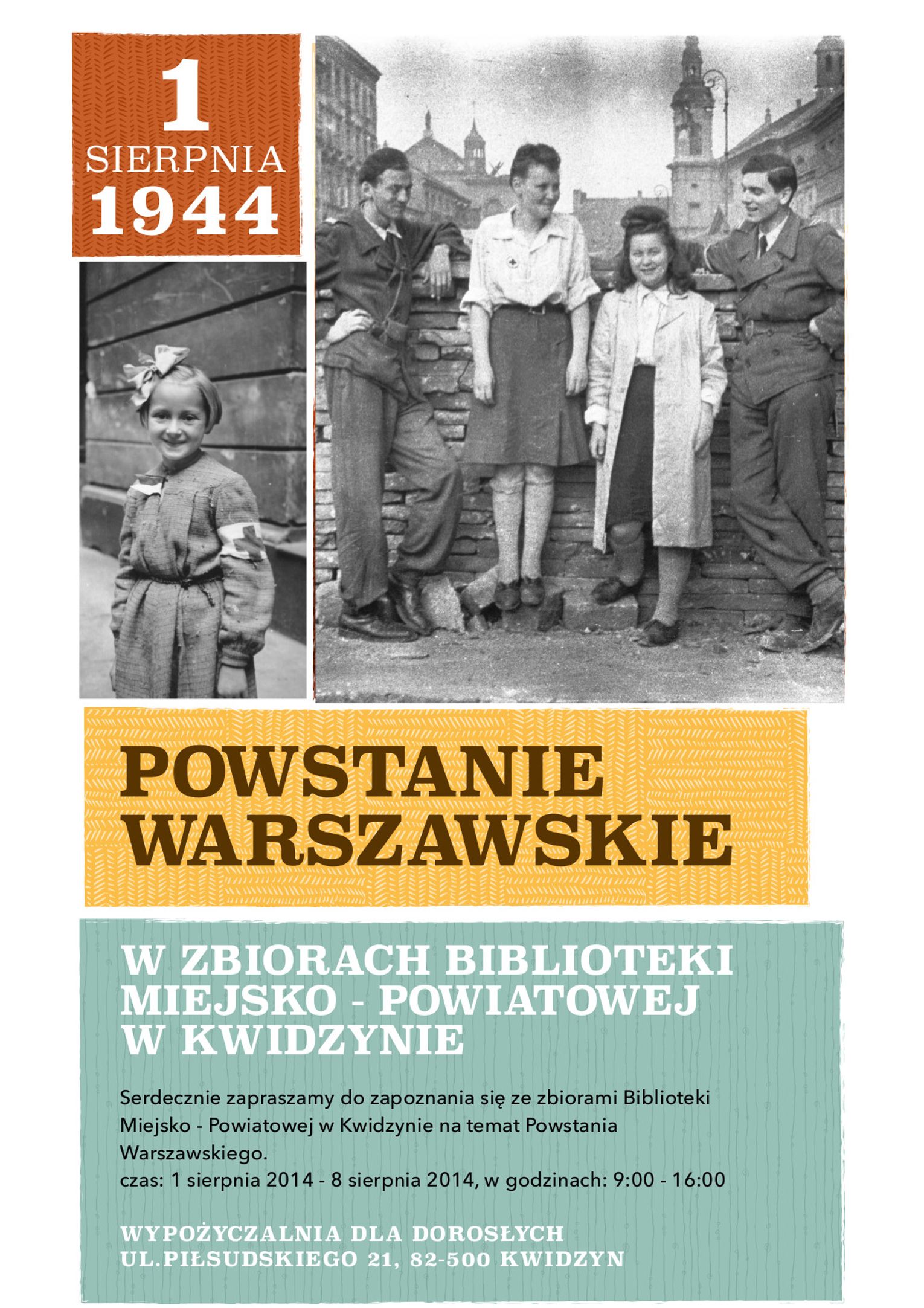 Biblioteka Miejsko-Powiatowa w Kwidzynie zaprasza natomiast do wypożyczalni dla dorosłych. Z okazji 70 rocznicy wybuchu Powstania Warszawskiego kwidzyńska biblioteka udostępnia bowiem swoje zbiory związane z powstaniem. Wypożyczalnia czynna jest w godzinach 9.00 – 16.00.