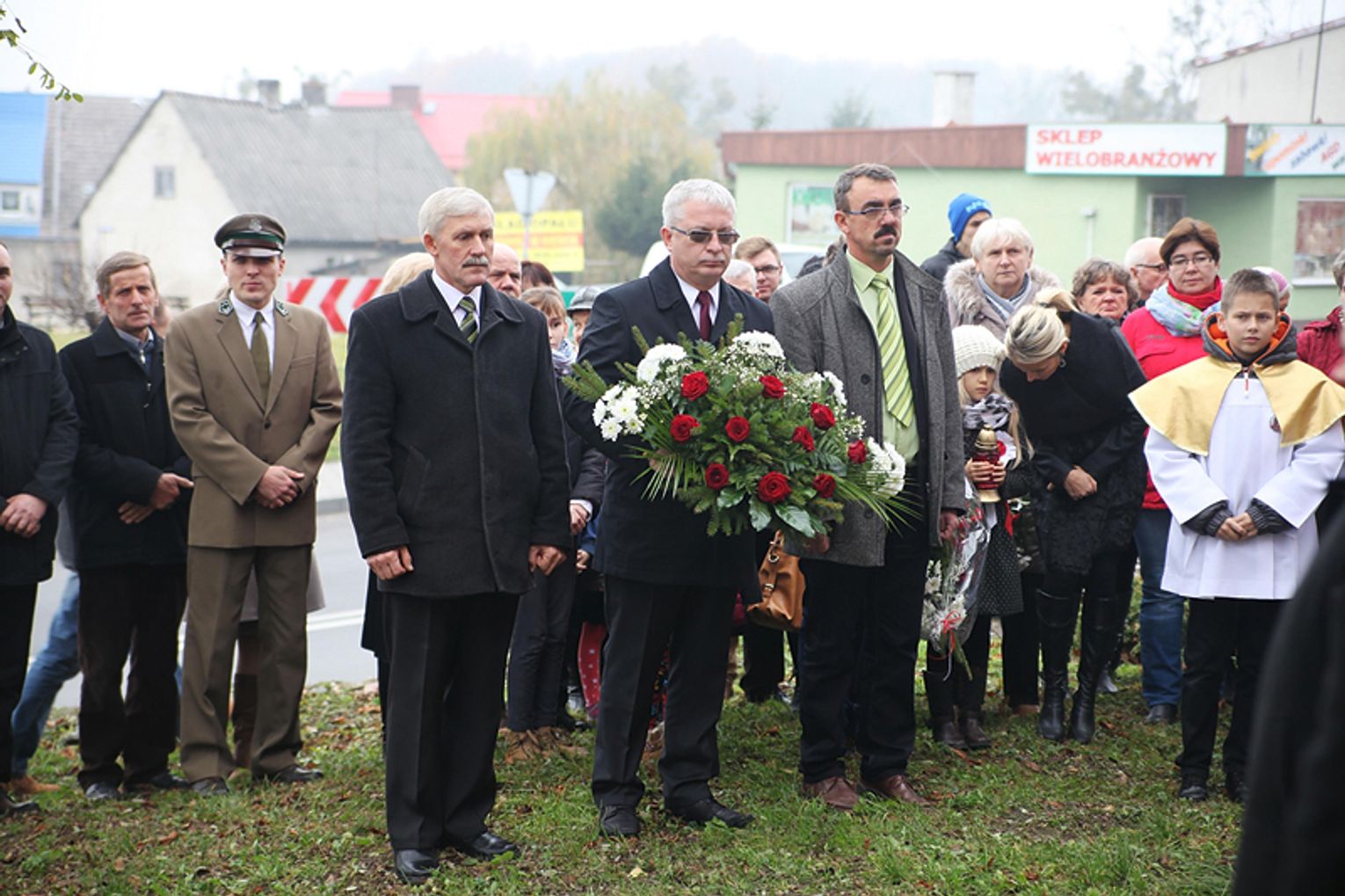 Niedzielny spektakl odbył się w sali Gminnego Ośrodka Kultury. Główne uroczystości odbyły się jednak we wtorek - 11 listopada, a ich początek dała uroczysta Mszy św. odprawiona w tzw. dużym kościele. Po Nabożeństwie mieszkańcy złożyli kwiaty oraz zapalili znicze pod tablicą pamięci Walczących Za Ojczyznę.