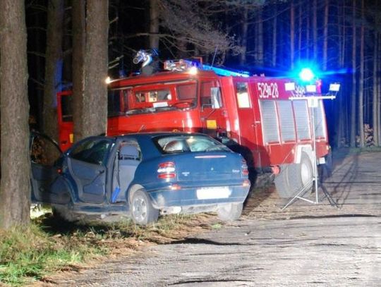 STAROGARD GD. Dwie osoby trafiły do szpitala w wyniku wypadku drogowego jaki wydarzył się w nocy nieopodal miejscowości Szlachta. W wyniku uderzenia osobowym fiatem w drzewo dwie osoby zostały ranne.