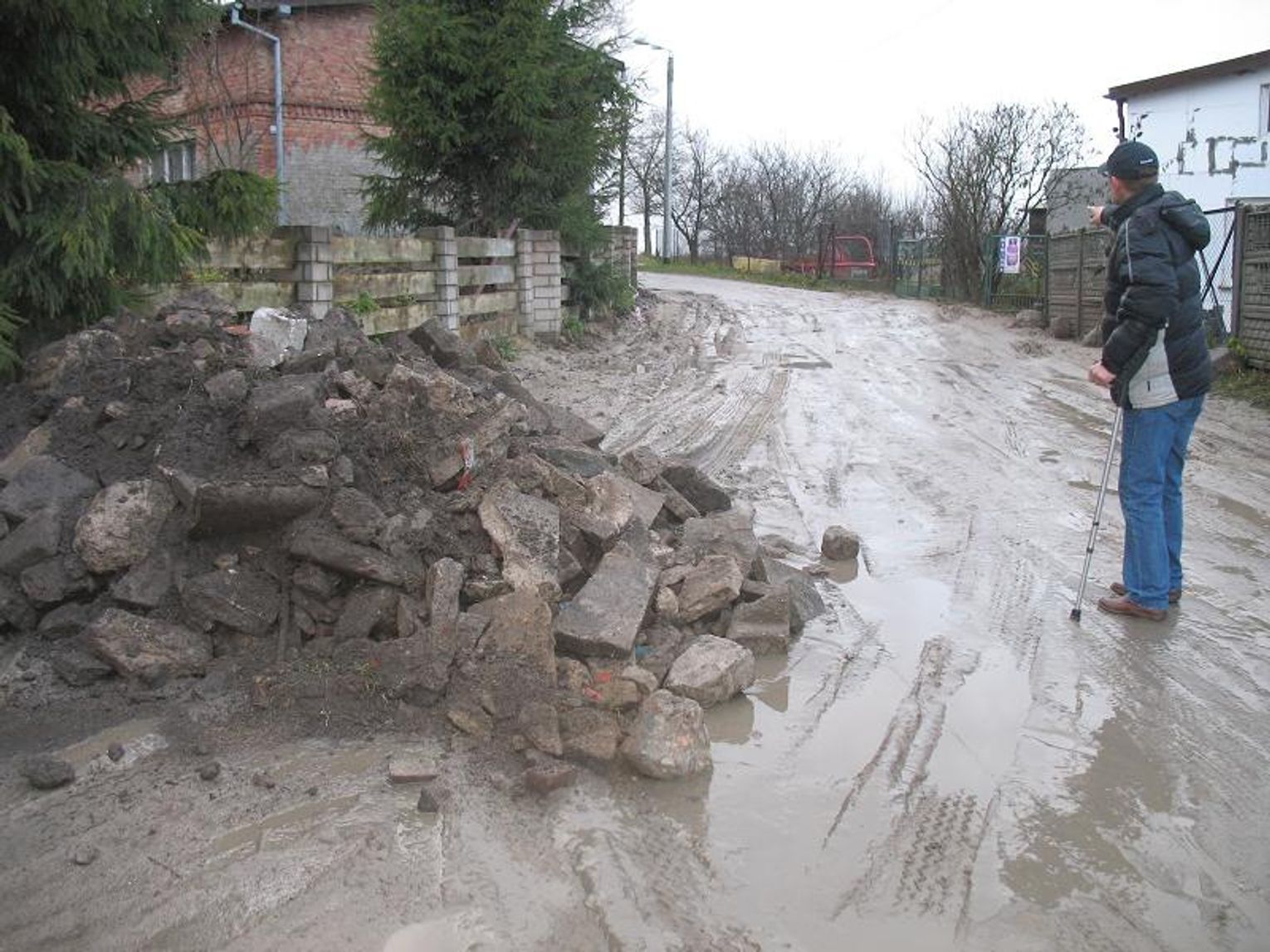 Ta ewentualność jest dla mieszkańców jak wyrok. Jak zwykle w takich przypadkach większość prac przeprowadzanych jest pod drogami, które choć gruntowe to jednak przed inwestycją dawały szansę normalnego poruszania. Teraz ubita ziemia zamieniła się w kleistą maź, którą mieszkańcy nazywają krótko: pobojowisko.