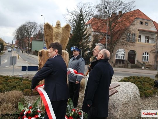Symbolicznego przecięcia wstęgi na rzeźbie orła, która będzie stałym elementem tego miejsca, dokonali: senator Leszek Czarnobaj, Jerzy Kozdroń, Zbigniew Kołodziejski i Marek Szulc.