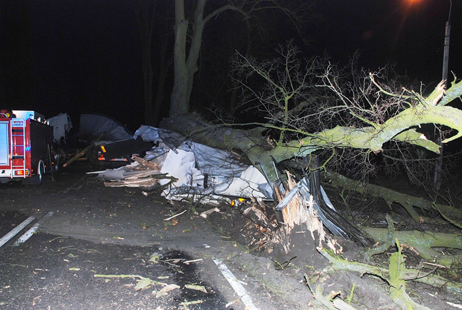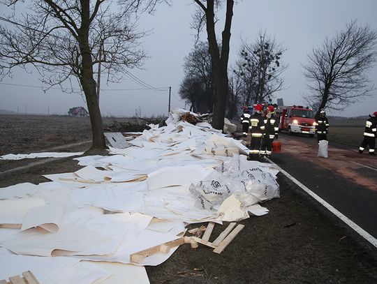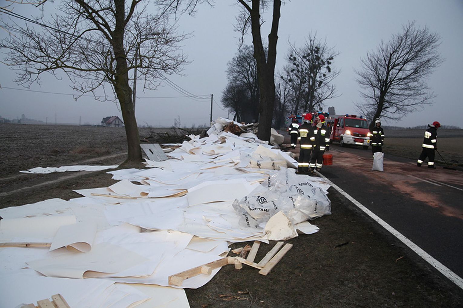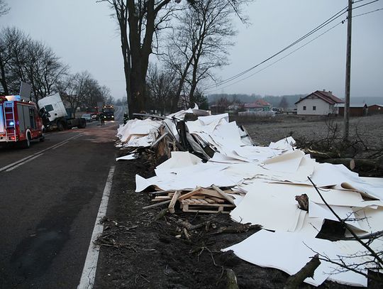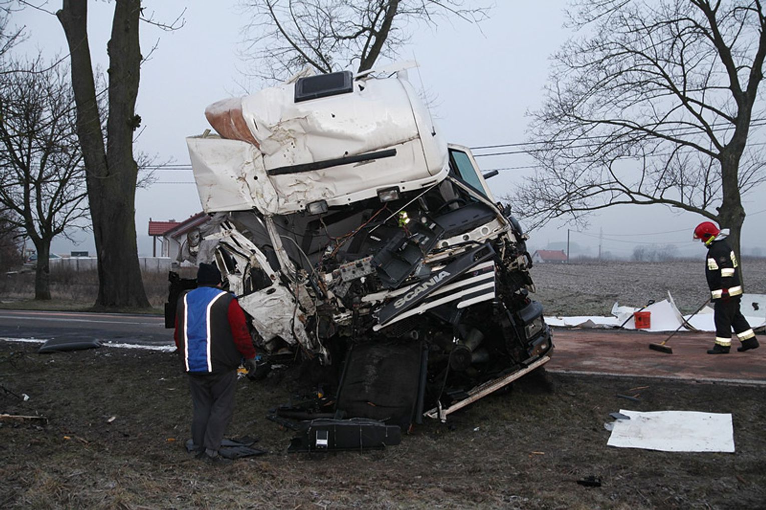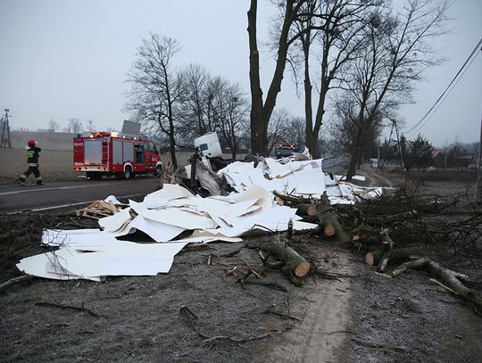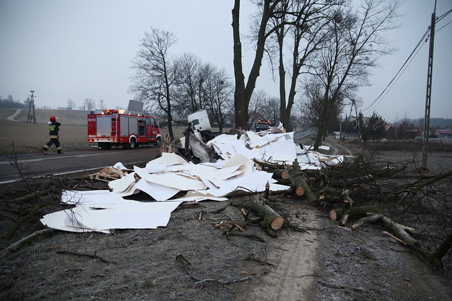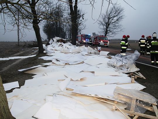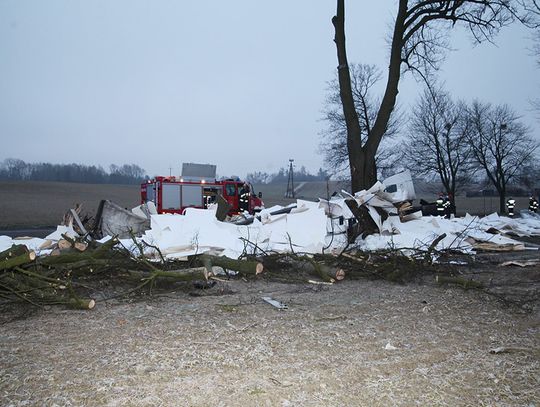 Na miejscu zdarzenia bardzo szybko pojawili się strażacy z OSP w Gardei. To, co zobaczyli mogło zmrozić krew w żyłach. Leżąca obok jezdni ścięta, gruba lipa, zmiażdżona kabina TIR-a i porozrzucany w miejscu wypadku papier. Uszkodzony pojazd stał natomiast w poprzek jezdni całkowicie blokując ruch.