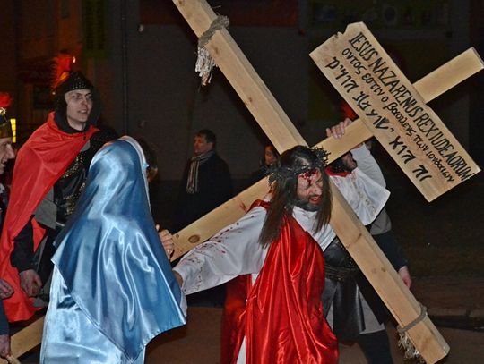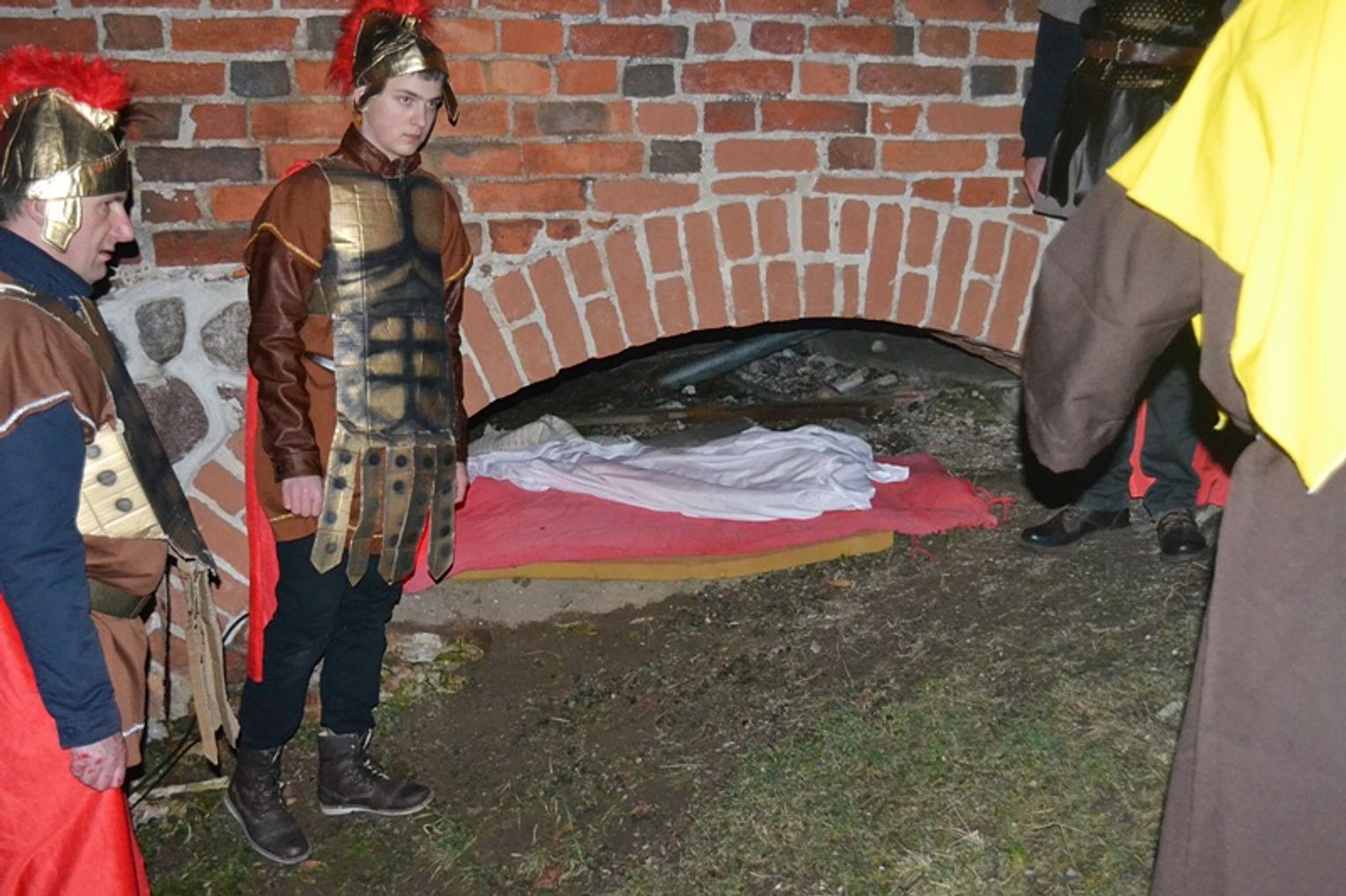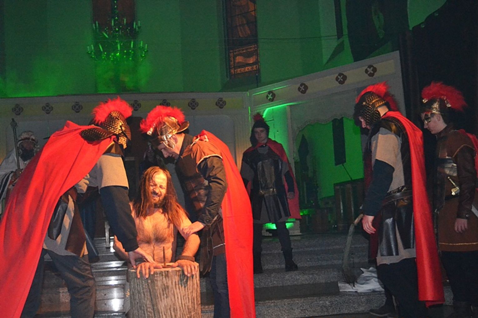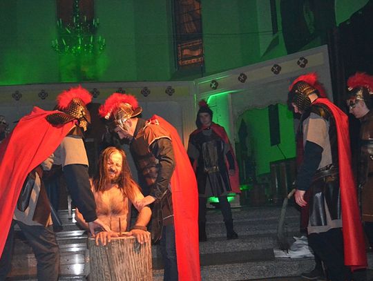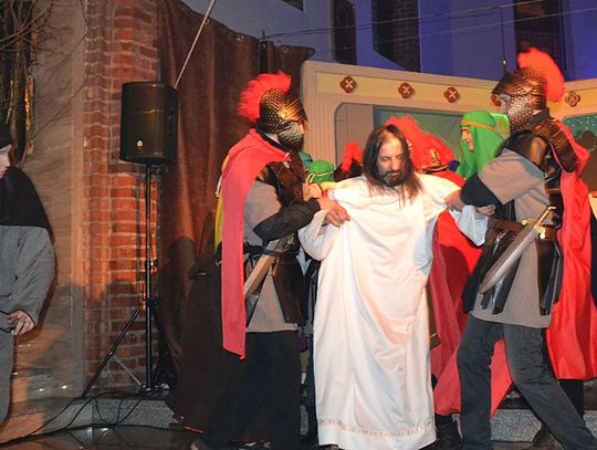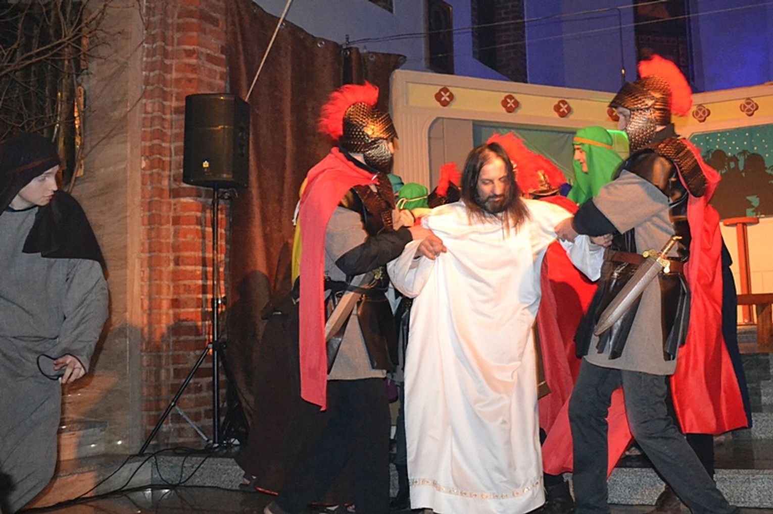 -W tym roku przedstawienie powstało z inicjatywy prabuckiej Akcji Katolickiej – mówi Andrzej Słowiński, jeden z aktorów tego widowiska. -Przygotowali je amatorzy, którzy wcielili się zarówno w postacie świadków Jezusa, samego Jezusa oraz antyświadków , którzy nie chcieli w Niego uwierzyć. To faryzeusze i saduceusze, którzy wraz z Piłatem skazali na śmierć Niewinnego. Spotykamy też zdrajcę Judasza, postać tragiczną i tajemniczą. Ale są też świadkowie pewni siebie, którzy w momencie próby uciekają, a nawet, jak Piotr, wypierają się swego Mistrza. Każdy aktor włożył wiele serca, aby jego rola jak najbardziej oddawała prawdziwy obraz przedstawianej tajemnicy.