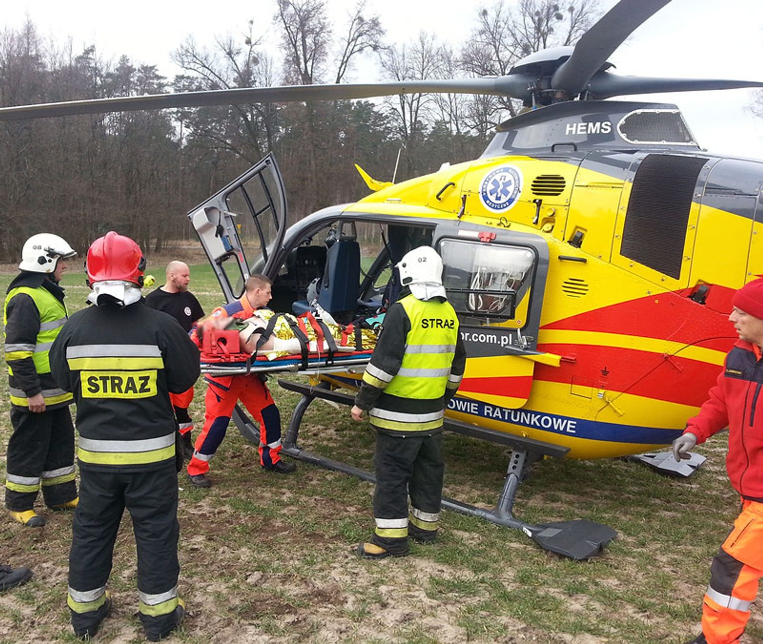 W wyniku wypadku mężczyzna doznał obrażeń wielu narządów. Nieprzytomny został przetransportowany helikopterem do szpitala.