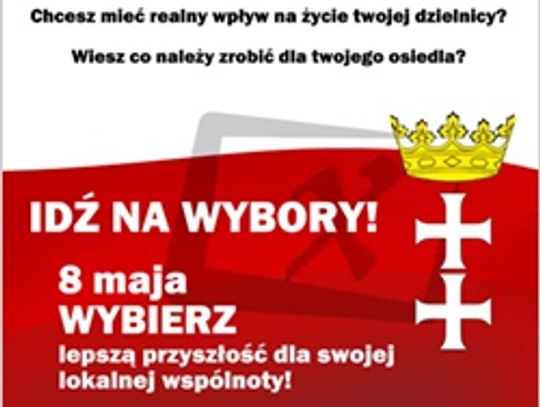 GDAŃSK. 8 maja, w niedzielę odbywają się w Gdańsku wybory do Jednostek Pomocniczych. Spośród 669 kandydatów mieszkańcy wybierają 435 radnych. Głosowanie w 5 dzielnicach i 22 osiedlach trwać będzie do godz, 21. Aby wybory były ważne, frekwencja musi wynieść 5 %. Im wyższa frekwencja, tym wyższe dofinansowanie na działalność statutową jednostek pomocniczych w 2012 r. Jest możliwości dowozu osób niepełnosprawnych do lokali wyborczych.
