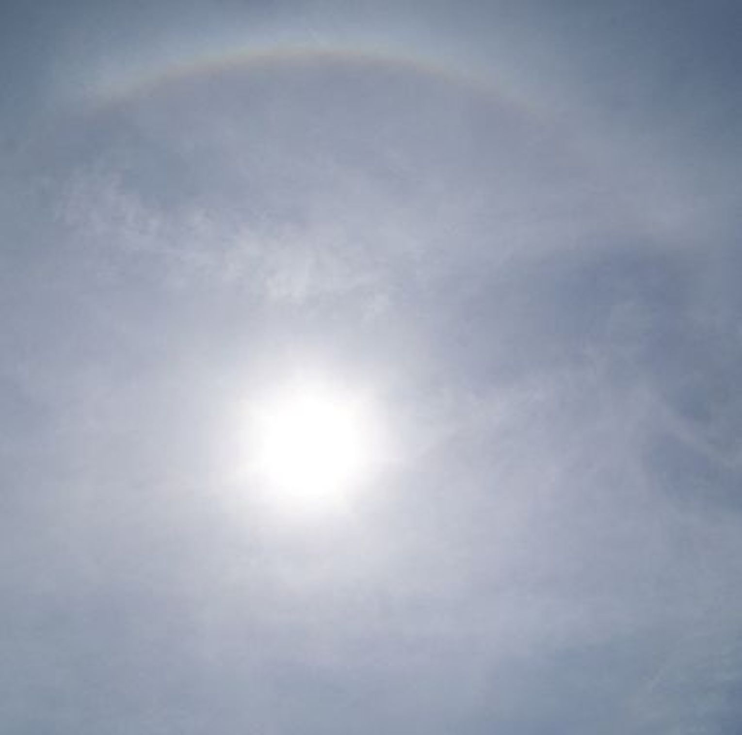 Jak wyjaśniają fizycy takie niecodzienne zjawisko jest wytłumaczalne - w meteorologii określane jako "halo słoneczne". Jest to przepiękny efekt słoneczny, wytworzony dzięki obecności (na wysokości kilku kilometrów nad ziemią) grubej chmury typu cirrostratus lub cienkiej, półprzezroczystej chmury altostratus. Wówczas ma miejsce załamanie i odbicie się światła słonecznego na kryształkach lodu, z których składają się te chmury wysokiego piętra. Słońce wygląda wówczas jakbyśmy patrzyli na nie przez szklankę, pojawia się barwny pierścień - tęczowy okrąg.