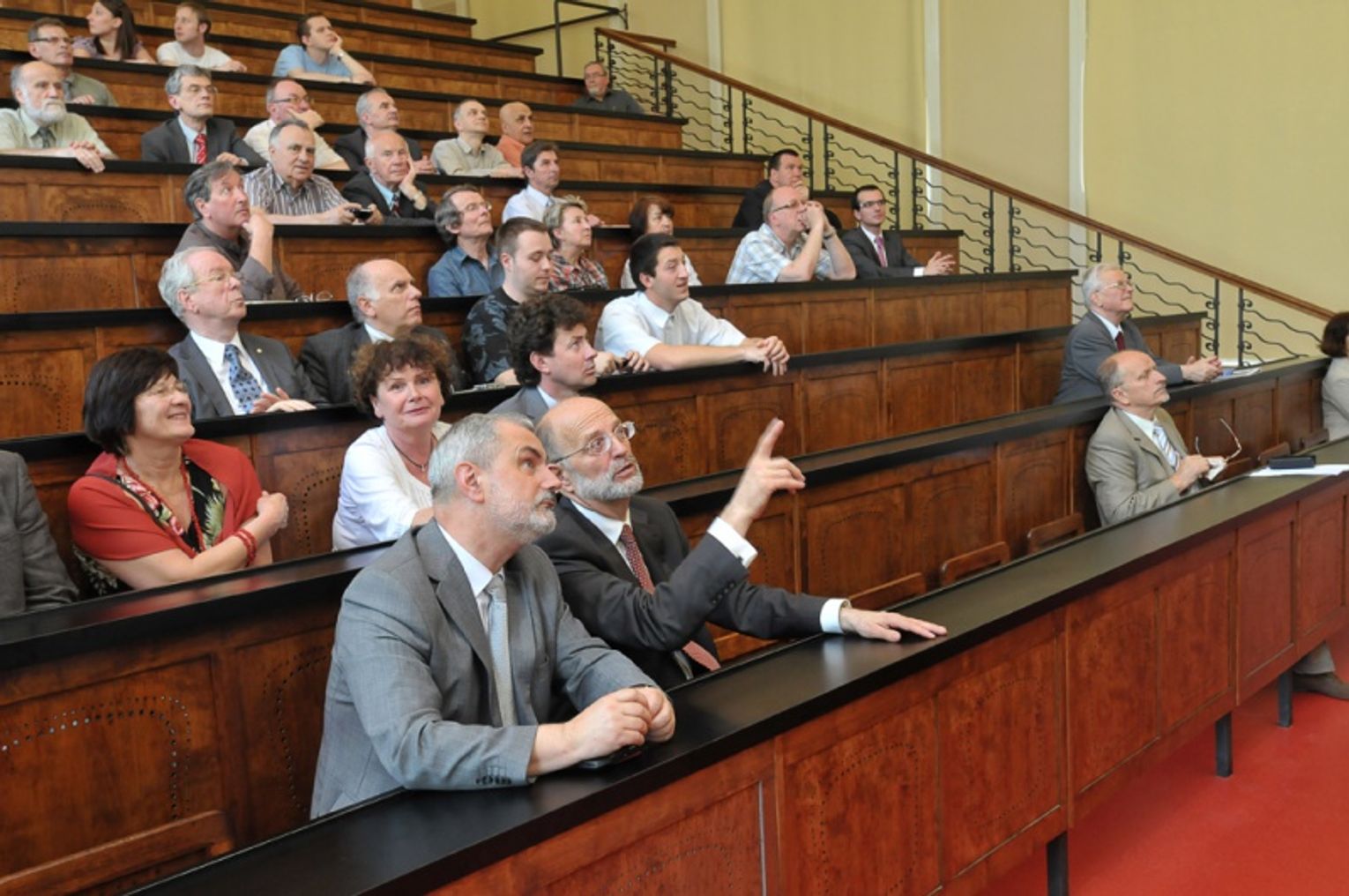 - Zachowało się około 75 proc. autentycznych drewnianych, perforowanych siedzisk, które stanowią jeden z elementów zabytkowości tej sali – kontynuuje dr Piwek. – Jest to dosyć dużo biorąc pod uwagę, że służyły studentom, którzy mają to do siebie, że nie lubią siedzieć spokojnie.