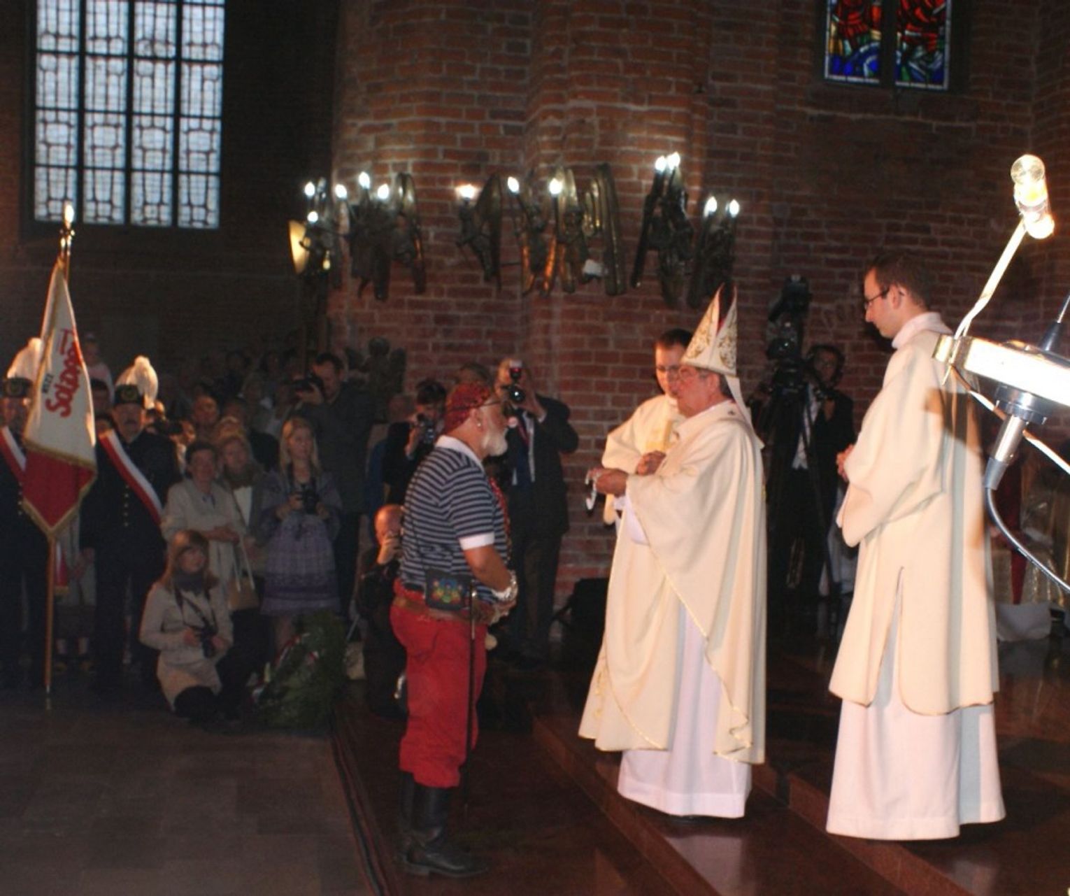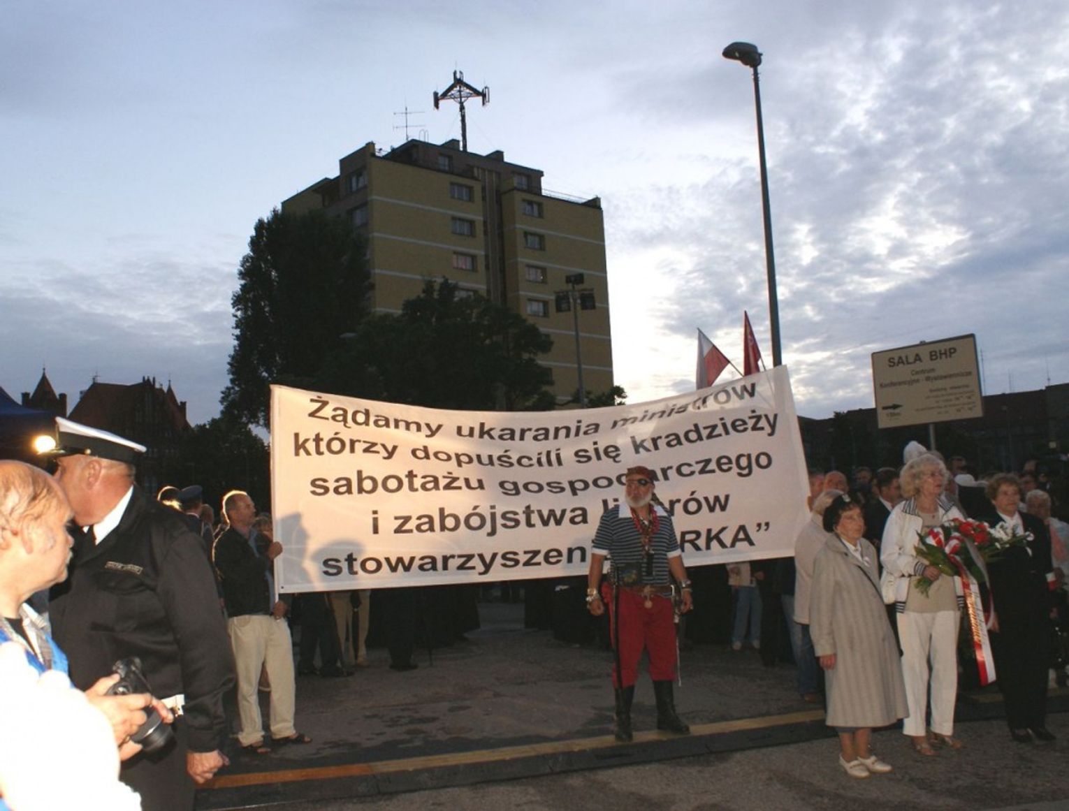 Na salę nie został wpuszczony przez gospodarzy spotkania nowy gdański "Pirat", postać znana w środowisku gdańskim z kontrowersyjnego zachowania się (m.in. poprzedniego dnia podczas ceremonii mszy św. w Bazylice św. Brygidy, przebrany za "pirata" nagle podszedł do celebrującego mszę bp Głódzia i... podał mu rękę, a pod bramą nr 2 Stoczni Gdańskiej podczas składania wieńców przez delegacje wiwatował pod banerem stowarzyszenia "Arka").